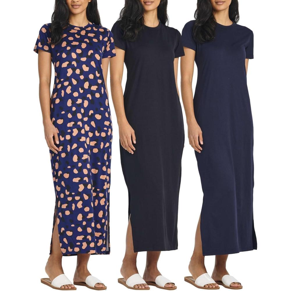 Plus Size Women's Casual Maxi Dresses: 3-Pack with Short Sleeves by Real Essentials(Set 9)