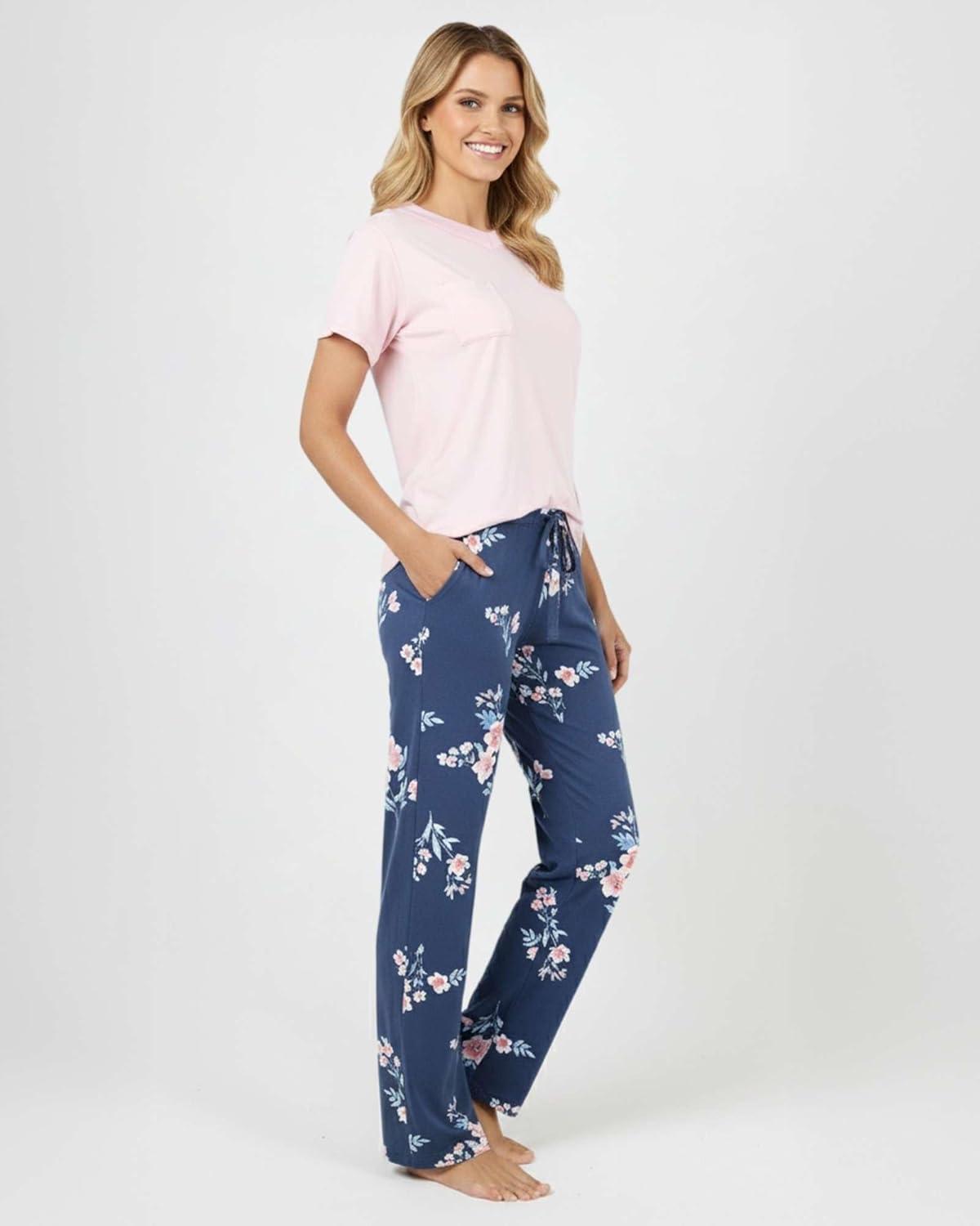 Real Essentials 2 Pack: Women’s Comfy Pajama Sets – Short & Long Sleeve Ladies Loungewear Sleepwear PJs (Available In Plus)(Set G Blue & Pink)
