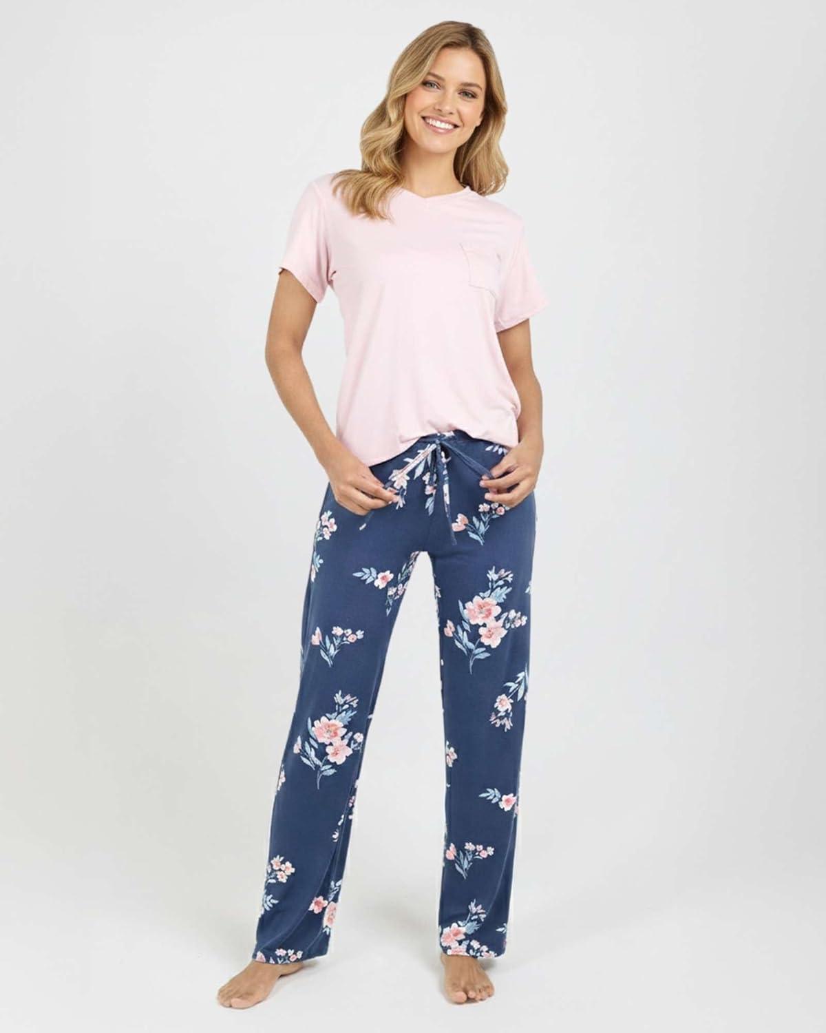 imageReal Essentials 2 Pack Womens Comfy Pajama Sets  Short ampamp Long Sleeve Ladies Loungewear Sleepwear PJs Available In PlusSet G Blue  Pink