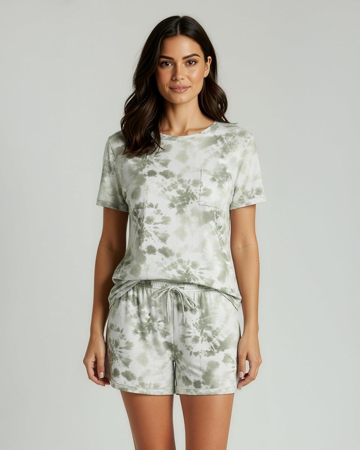imageReal Essentials 2 Pack Womens Short Sleeve Pajama Short Set  Comfy Lightweight Soft Lounge Sleepwear PlusSet 6