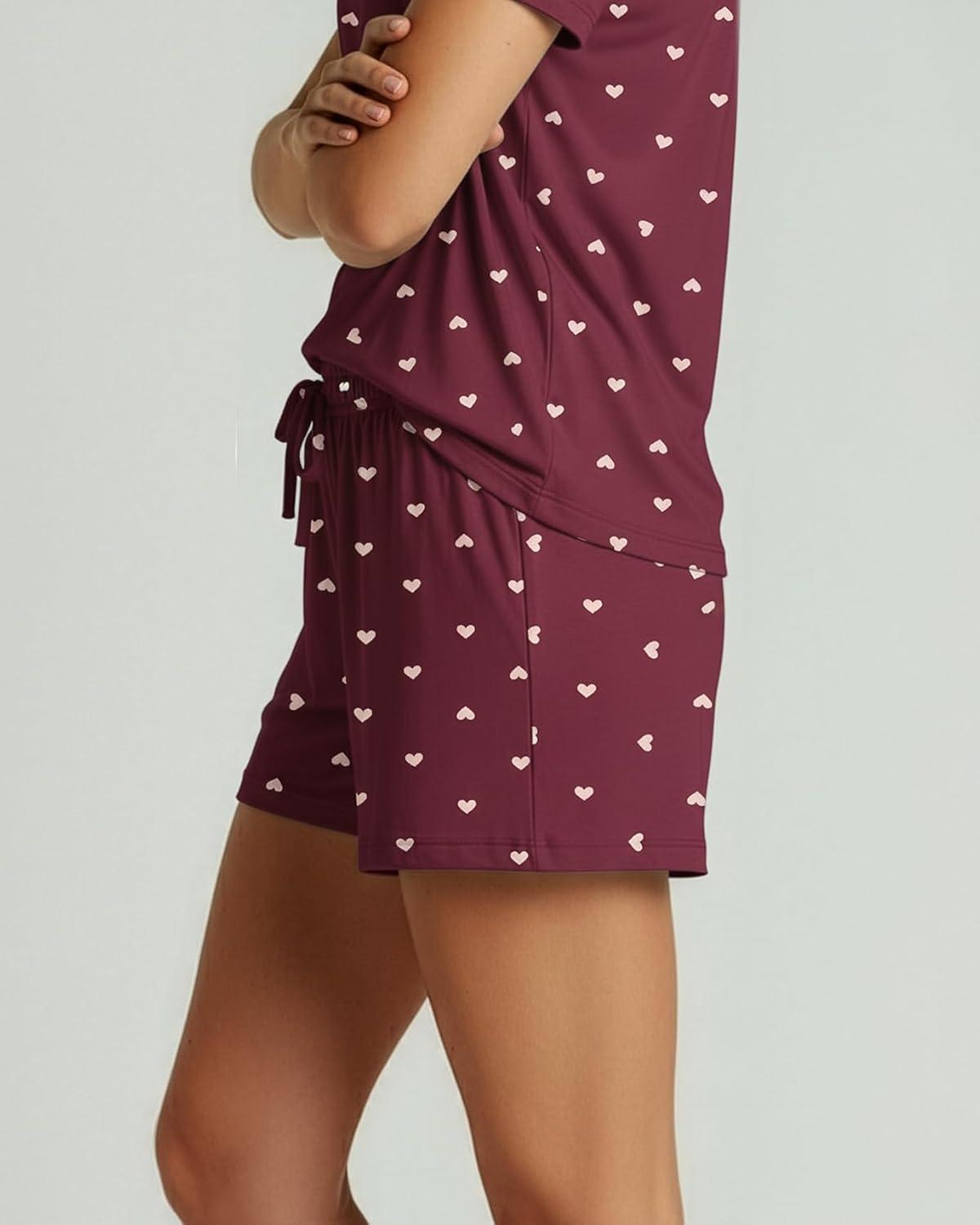 Real Essentials 2 Pack: Women’s Short Sleeve Pajama Short Set – Comfy Lightweight Soft Lounge Sleepwear (Plus(Set 10)
