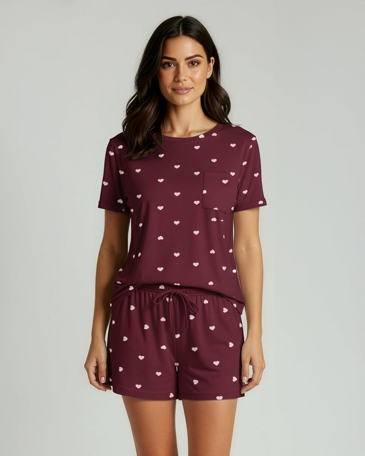 Real Essentials 2 Pack: Women’s Short Sleeve Pajama Short Set – Comfy Lightweight Soft Lounge Sleepwear (Plus(Set 8)