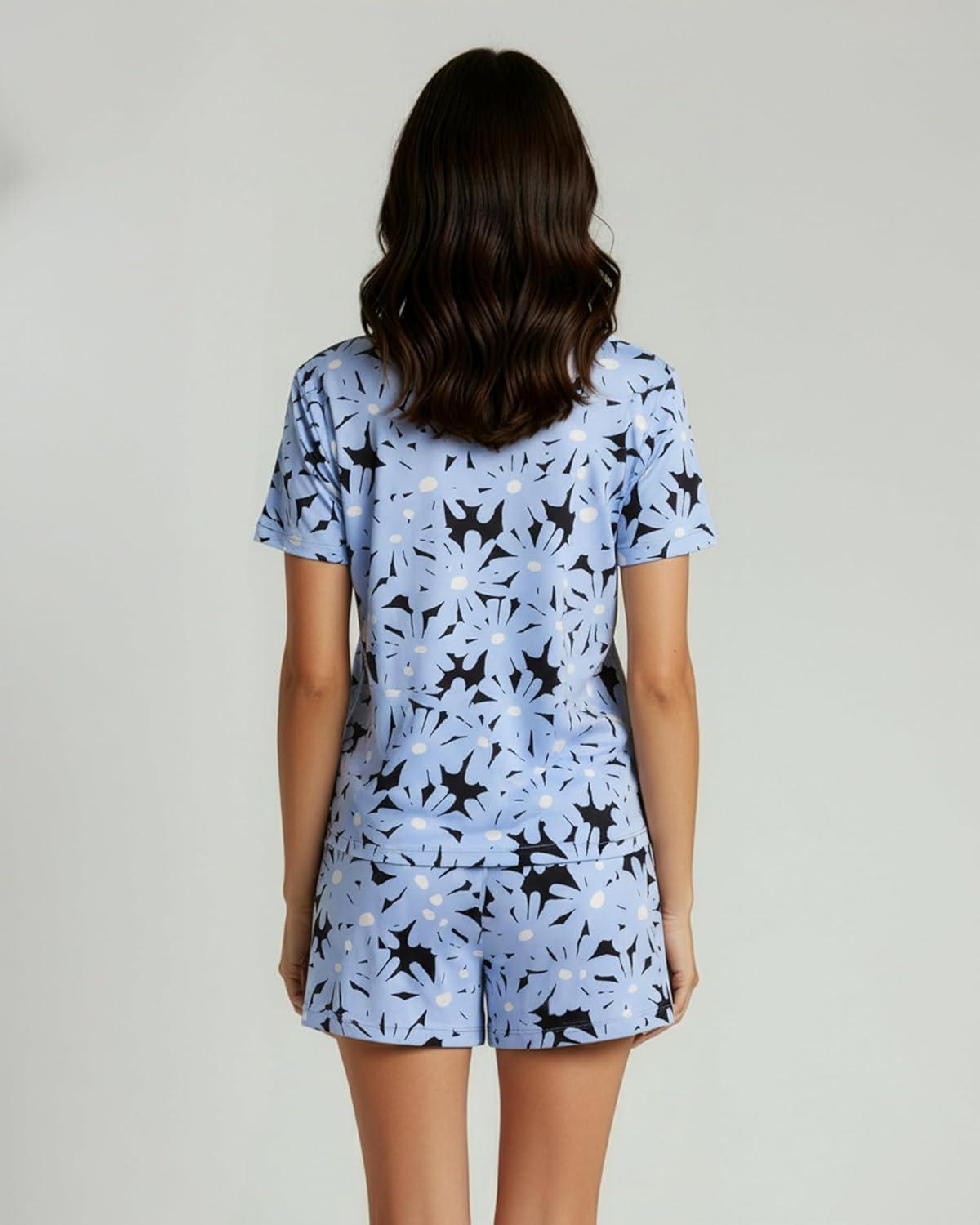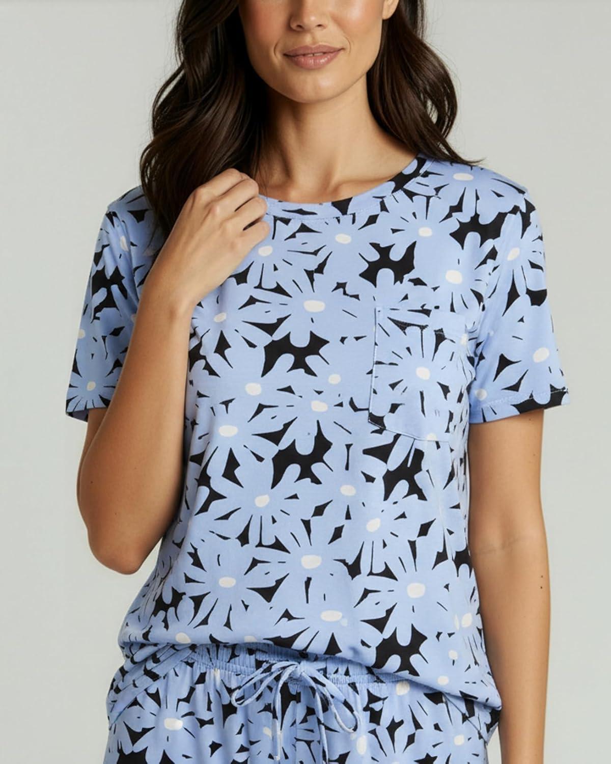 Real Essentials 2 Pack: Women’s Short Sleeve Pajama Short Set – Comfy Lightweight Soft Lounge Sleepwear (Plus(Set 9)