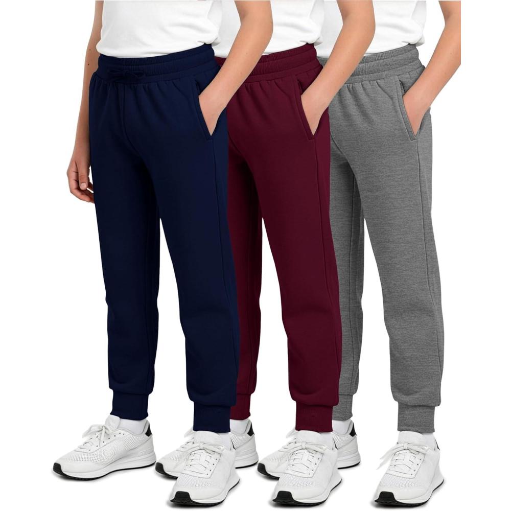 Real Essentials 3 Pack: Boys’ Cotton Fleece Jogger Sweatpants – Active Athletic Youth Pants for Teens with Pockets(Set E)