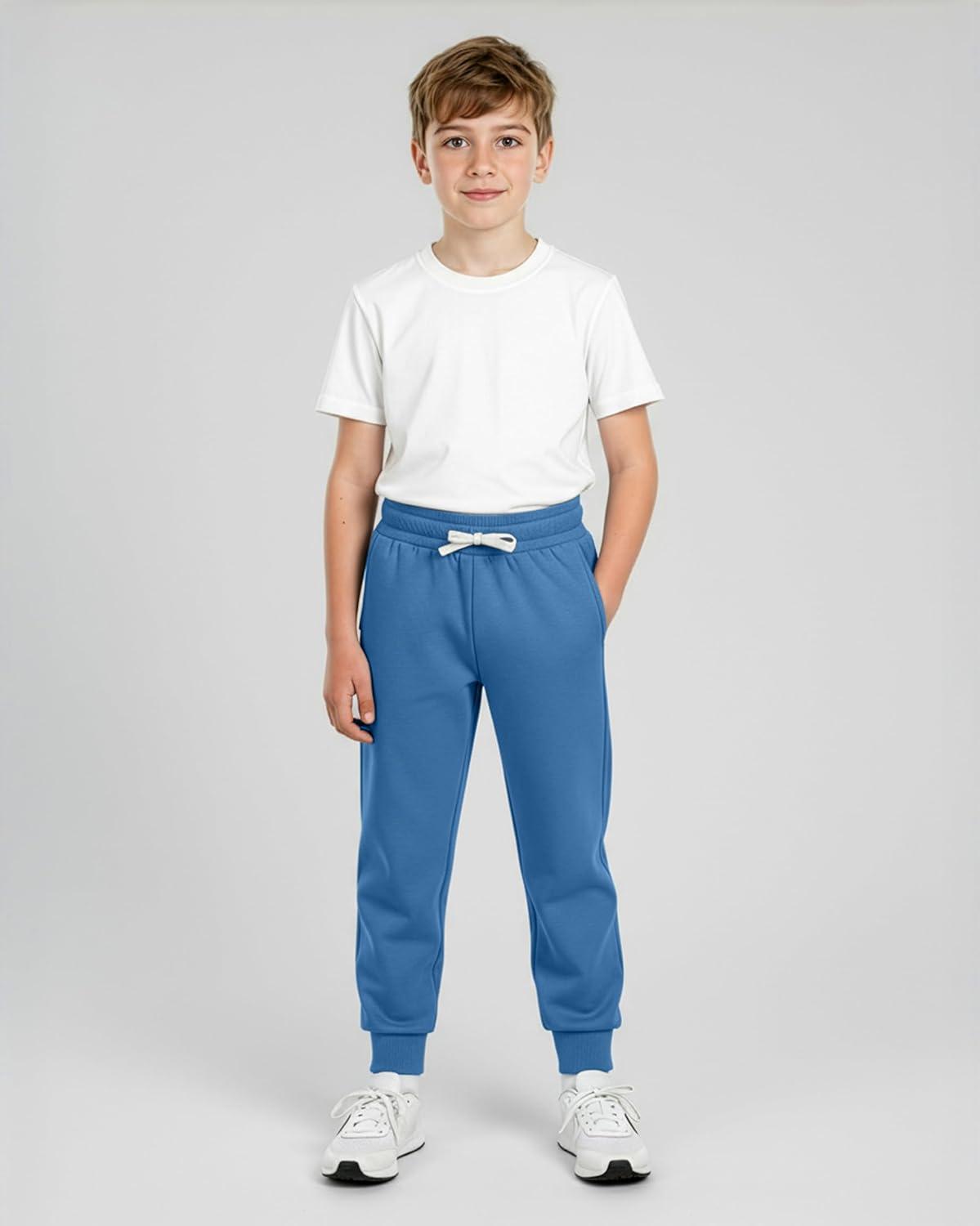 Real Essentials 3 Pack: Boys’ Cotton Fleece Jogger Sweatpants – Active Athletic Youth Pants for Teens with Pockets(Set H)