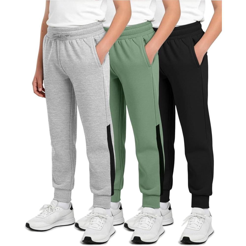 Real Essentials 3 Pack: Boys’ Cotton Fleece Jogger Sweatpants – Active Athletic Youth Pants for Teens with Pockets(Set J)