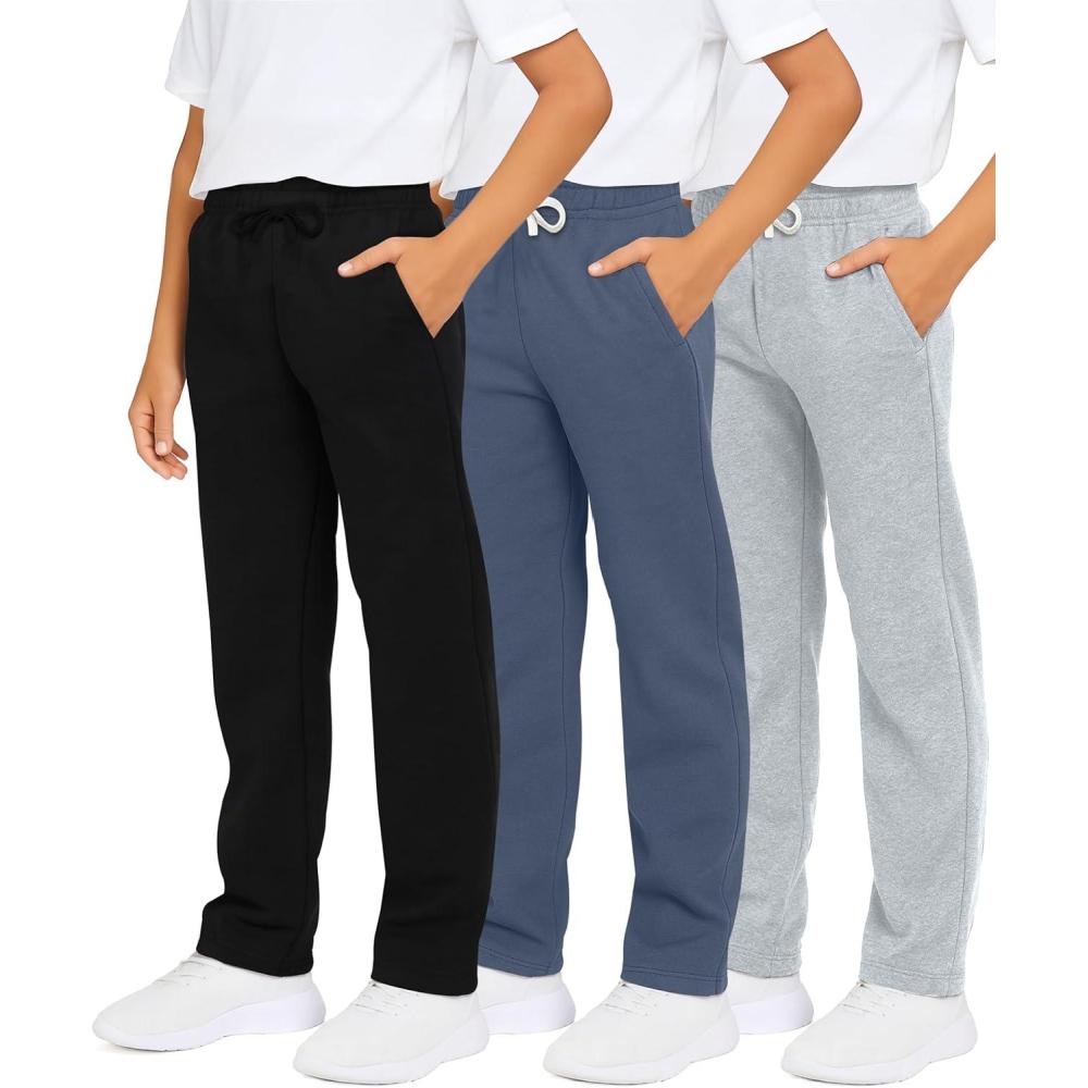 Real Essentials 3 Pack: Boys’ Tech Fleece Open Bottom Sweatpants with Pockets (Size 6-24)(Set 11)