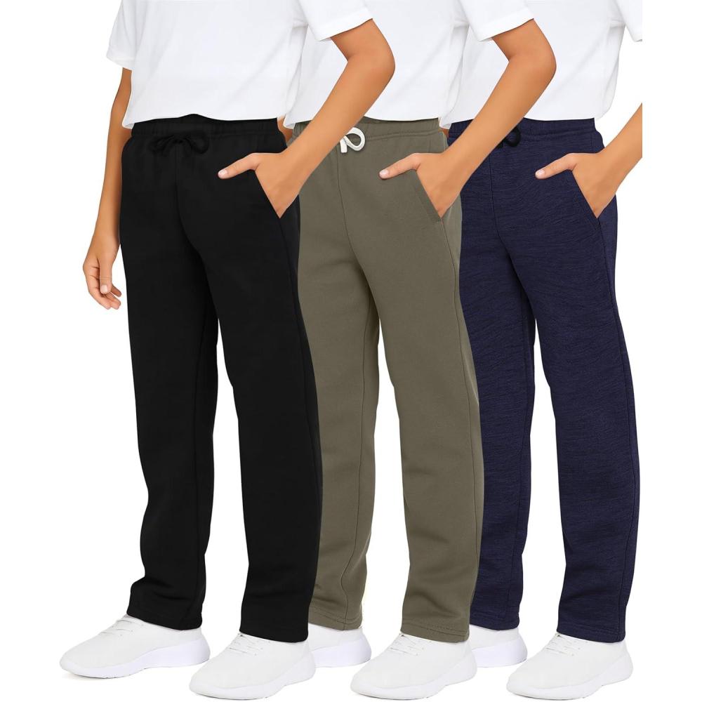 Real Essentials 3 Pack: Boys’ Tech Fleece Open Bottom Sweatpants with Pockets (Size 6-24)(Set 5)