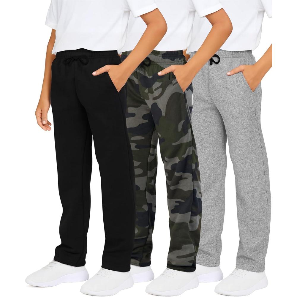 Real Essentials 3 Pack: Boys’ Tech Fleece Open Bottom Sweatpants with Pockets (Size 6-24)(Set 5)