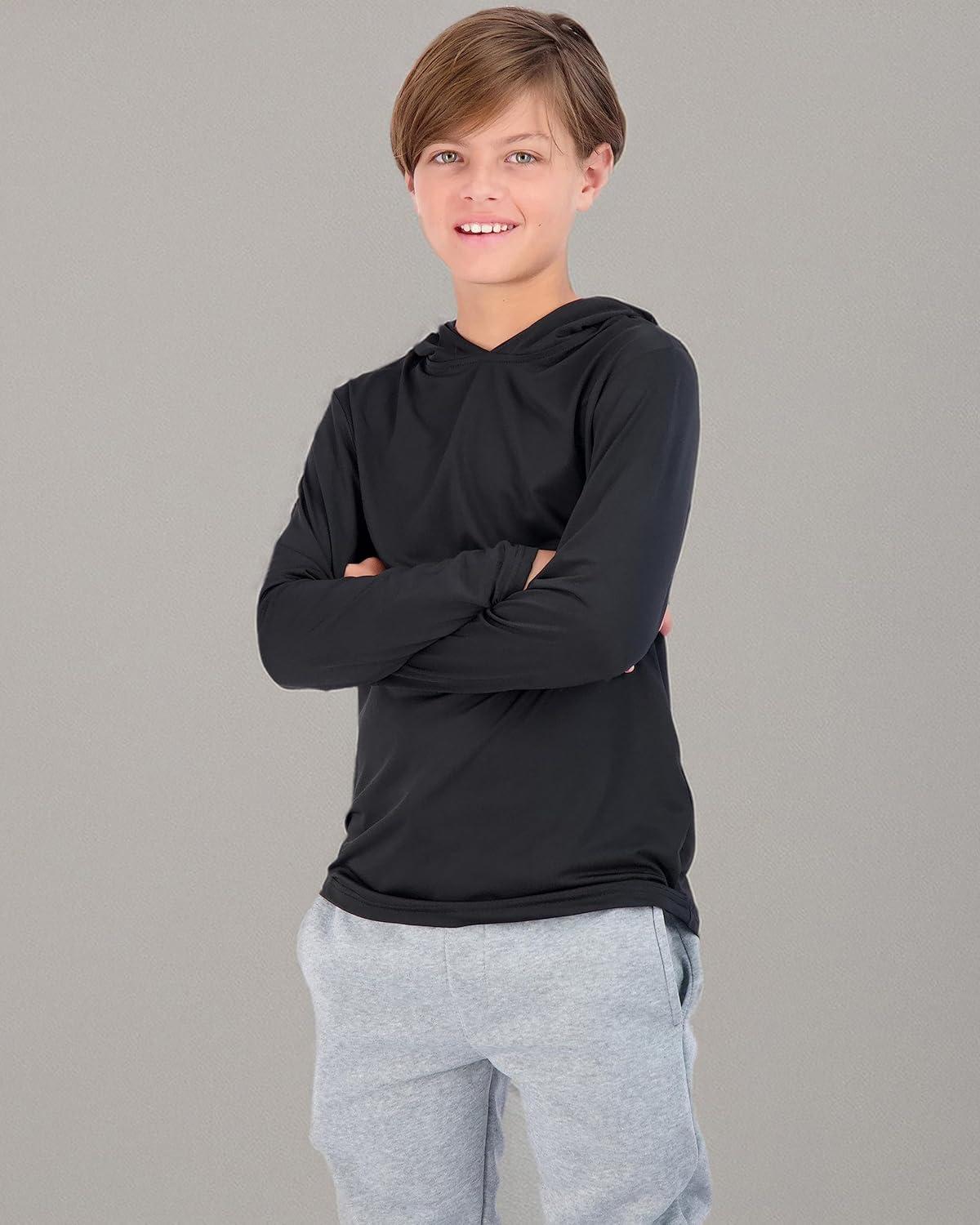 Real Essentials 3 Pack: Dry-Fit Youth Boys Teen Active Long Sleeve Hoodie Sweatshirts – Hooded Pullover Shirts(Set E)
