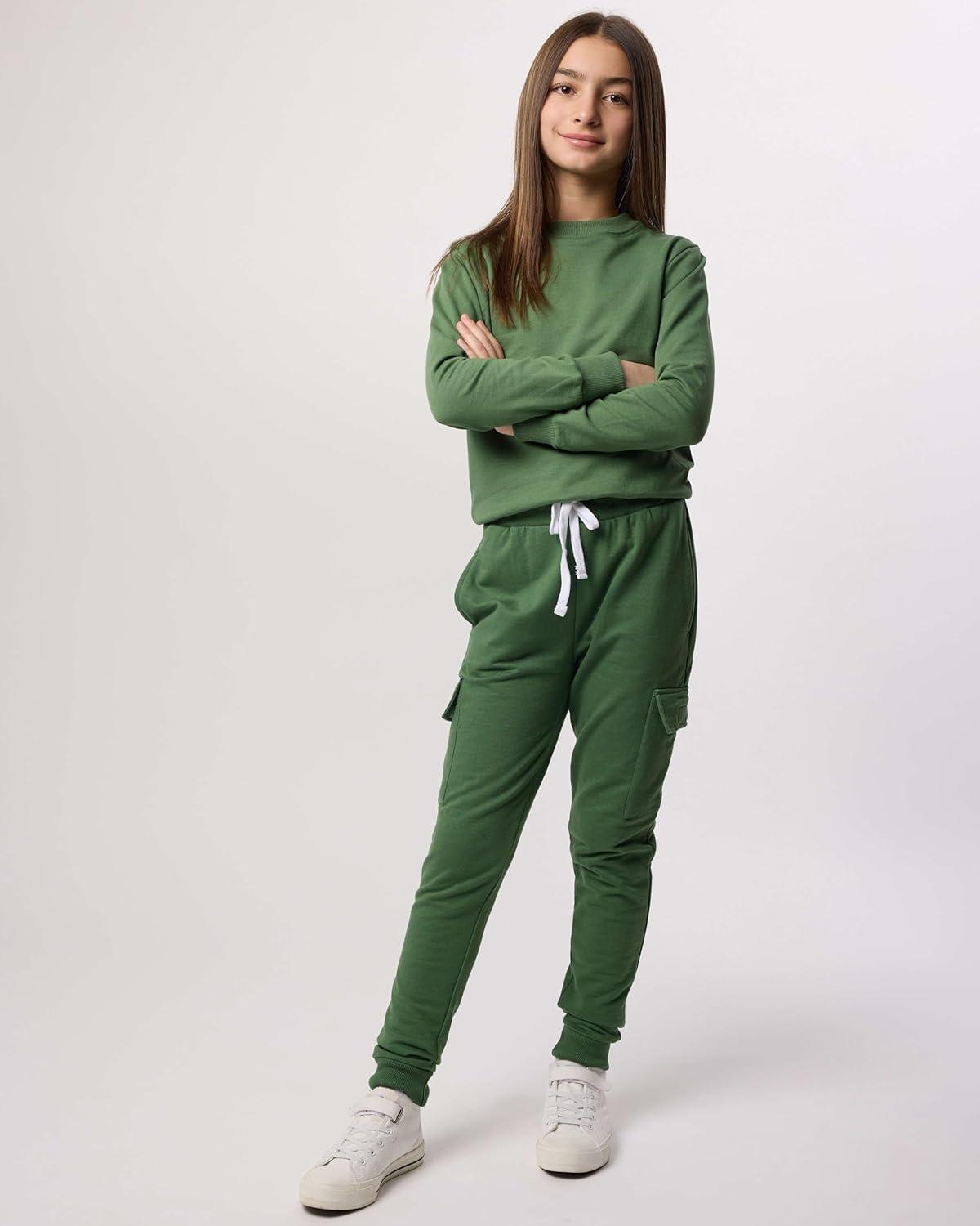 Real Essentials 3 Pack: Girls’ Fleece Cargo Joggers Athletic Sweatpants – Casual Pants with Pockets (Ages 6-16)(Set 2)