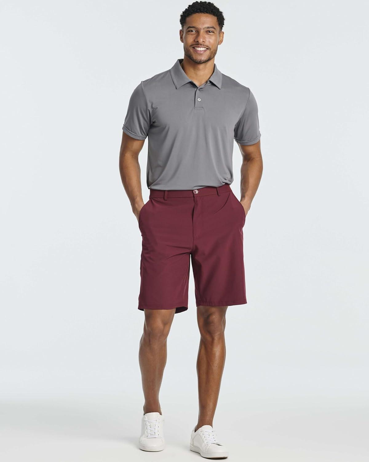 Real Essentials 3 Pack: Mens 9″ Stretch Golf Shorts with Pockets – Flat Front Casual Work Dress Short for Men(Set 5)