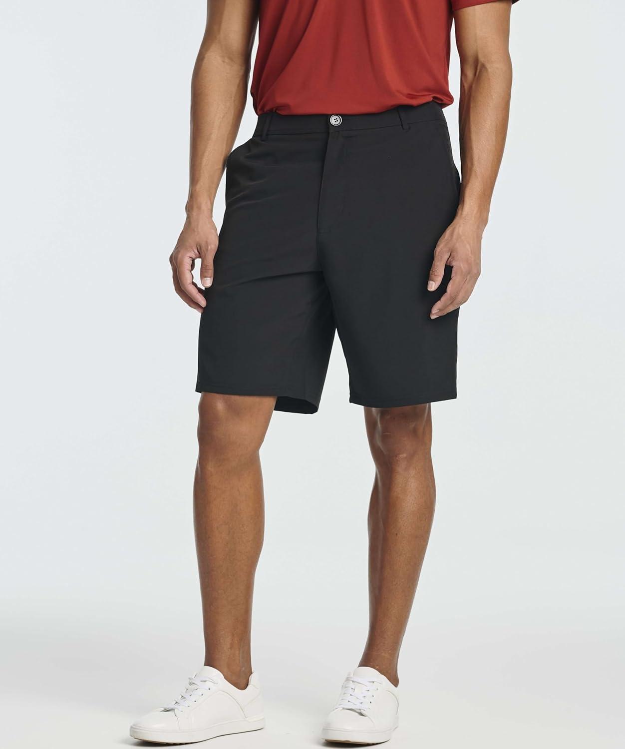 Real Essentials 3 Pack: Mens 9″ Stretch Golf Shorts with Pockets – Flat Front Casual Work Dress Short for Men(Set 8)