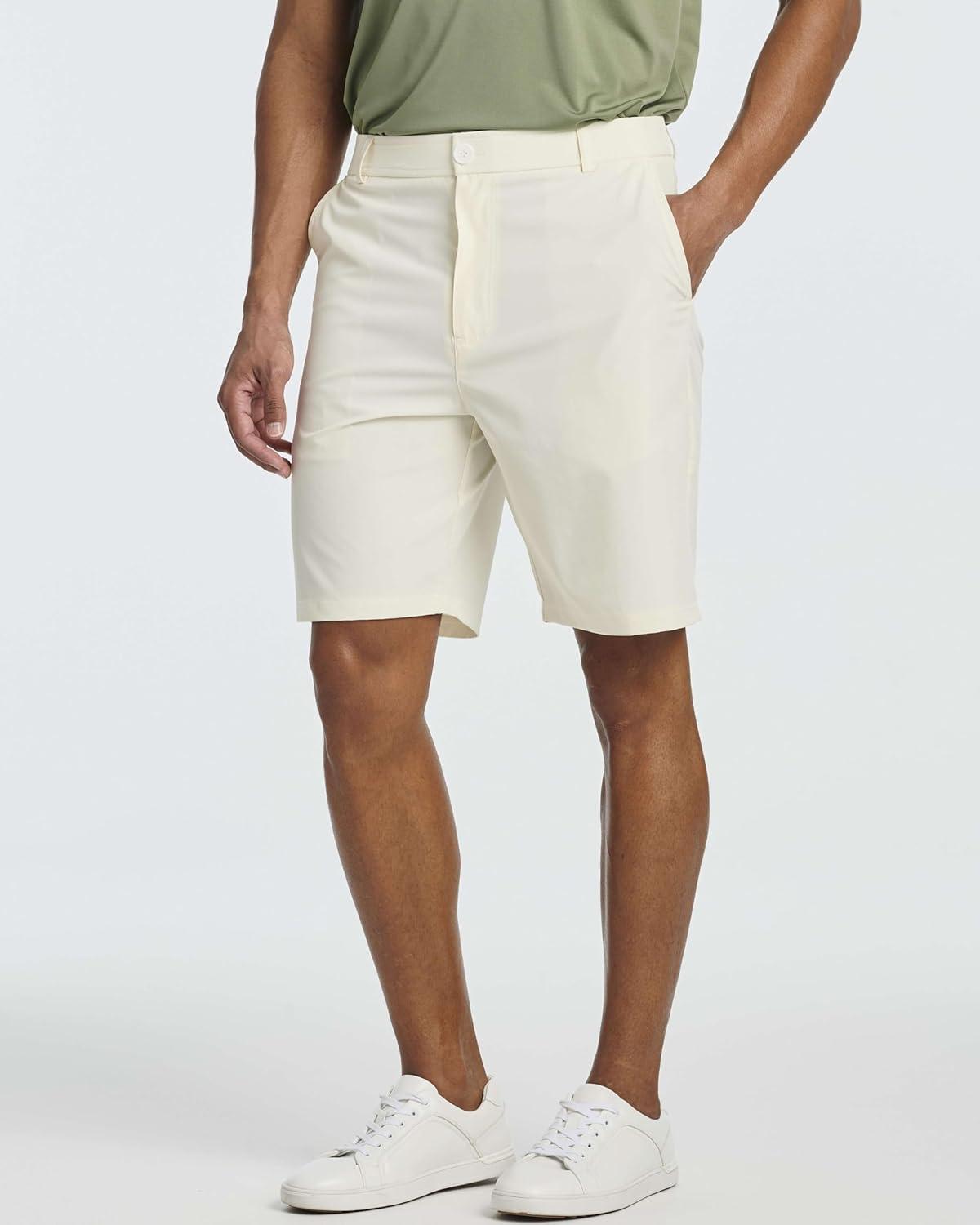 Real Essentials 3 Pack: Mens 9" Stretch Golf Shorts with Pockets - Flat Front Casual Work Dress Short for Men(Set 8)