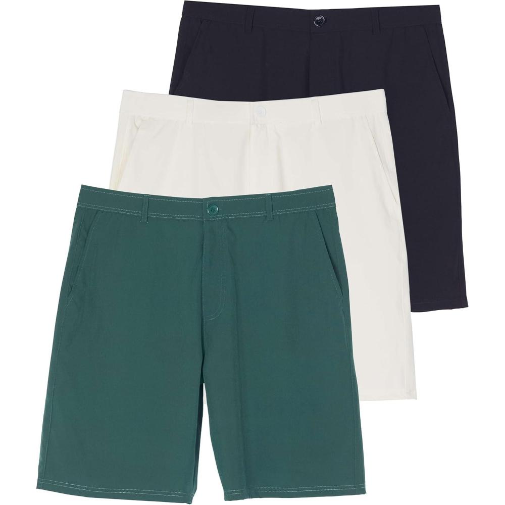 Real Essentials 3 Pack: Mens 9″ Stretch Golf Shorts with Pockets – Flat Front Casual Work Dress Short for Men(Set 7)