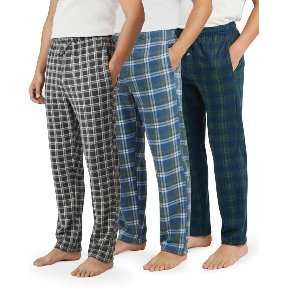 Real Essentials 3 Pack: Men’s Fleece Pajama Pants Loungewear Soft Pj Bottoms Sleepwear Pockets (Big & Tall Available)(Set H)