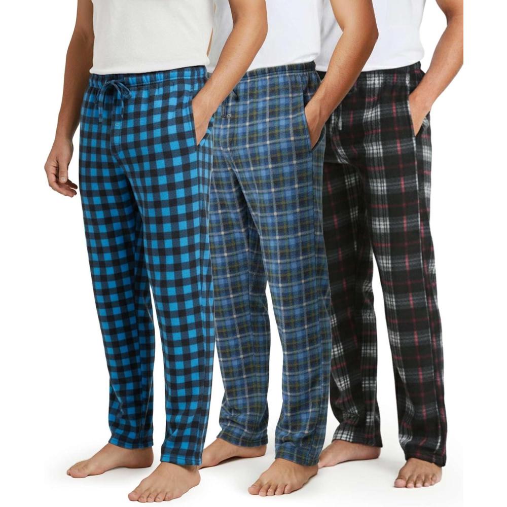 Real Essentials 3 Pack: Men’s Fleece Pajama Pants Loungewear Soft Pj Bottoms Sleepwear Pockets (Big & Tall Available)(Set C)