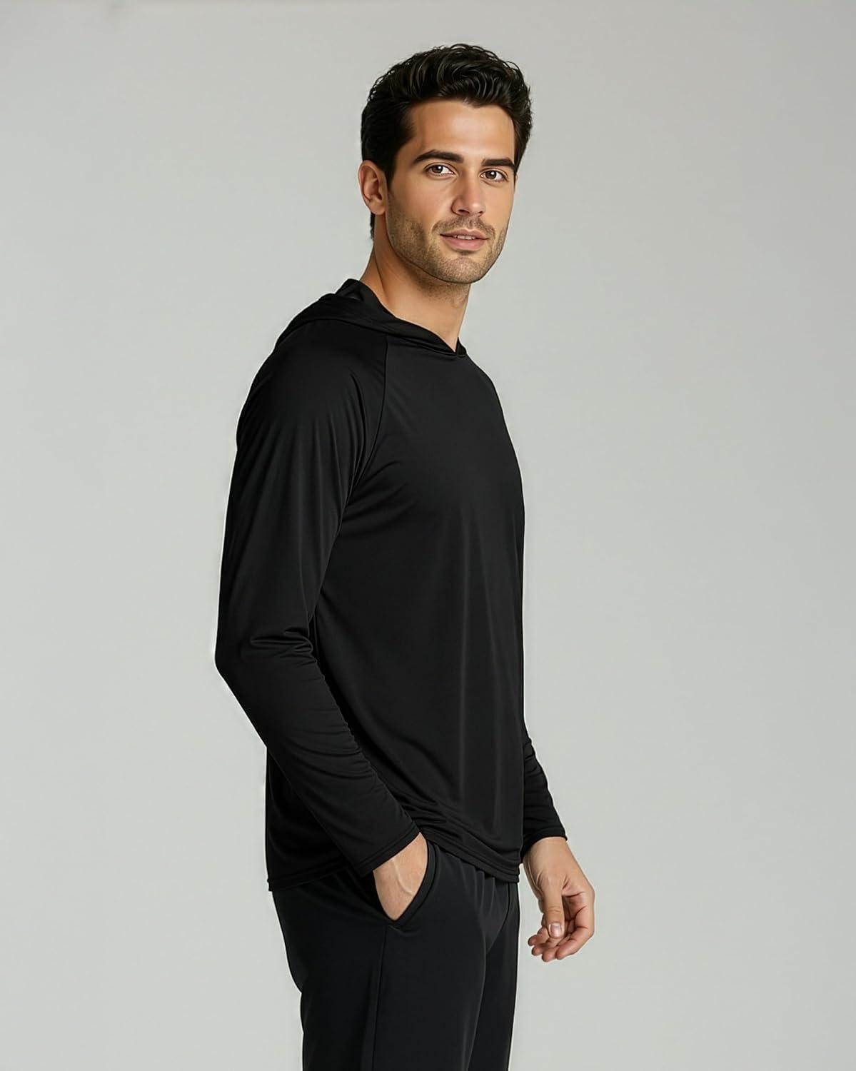 Real Essentials 3 Pack: Men’s Long Sleeve Rash Guard Hoodie – SPF UV Sun Protection Workout Fishing Swim Shirts (Big & Tall)(Set 6)