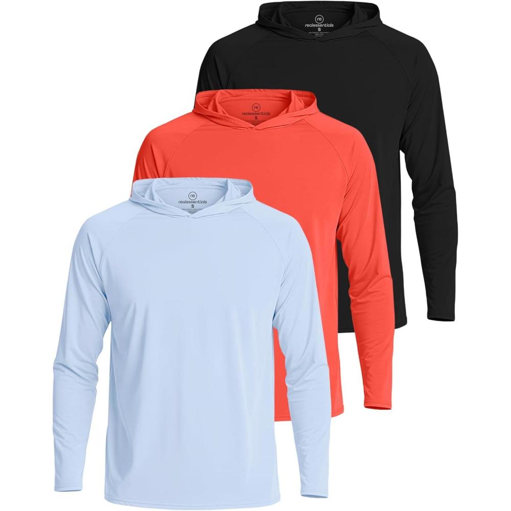 Real Essentials 3 Pack: Men’s Long Sleeve Rash Guard Hoodie – SPF UV Sun Protection Workout Fishing Swim Shirts (Big & Tall)(Set 7)