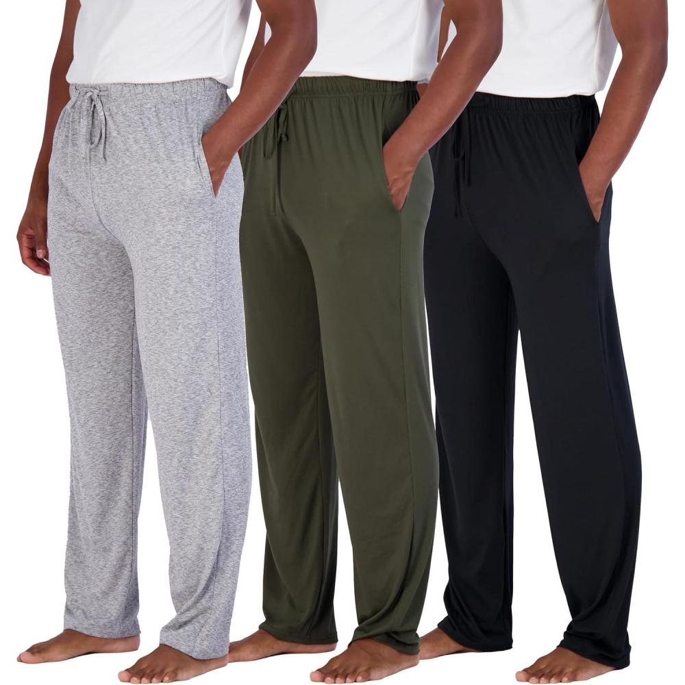 imageReal Essentials 3 Pack Mens Pajama Pants Soft PJ Lounge Bottoms Loungewear Pijamas Elastic Waist Pockets Big and TallSet 3