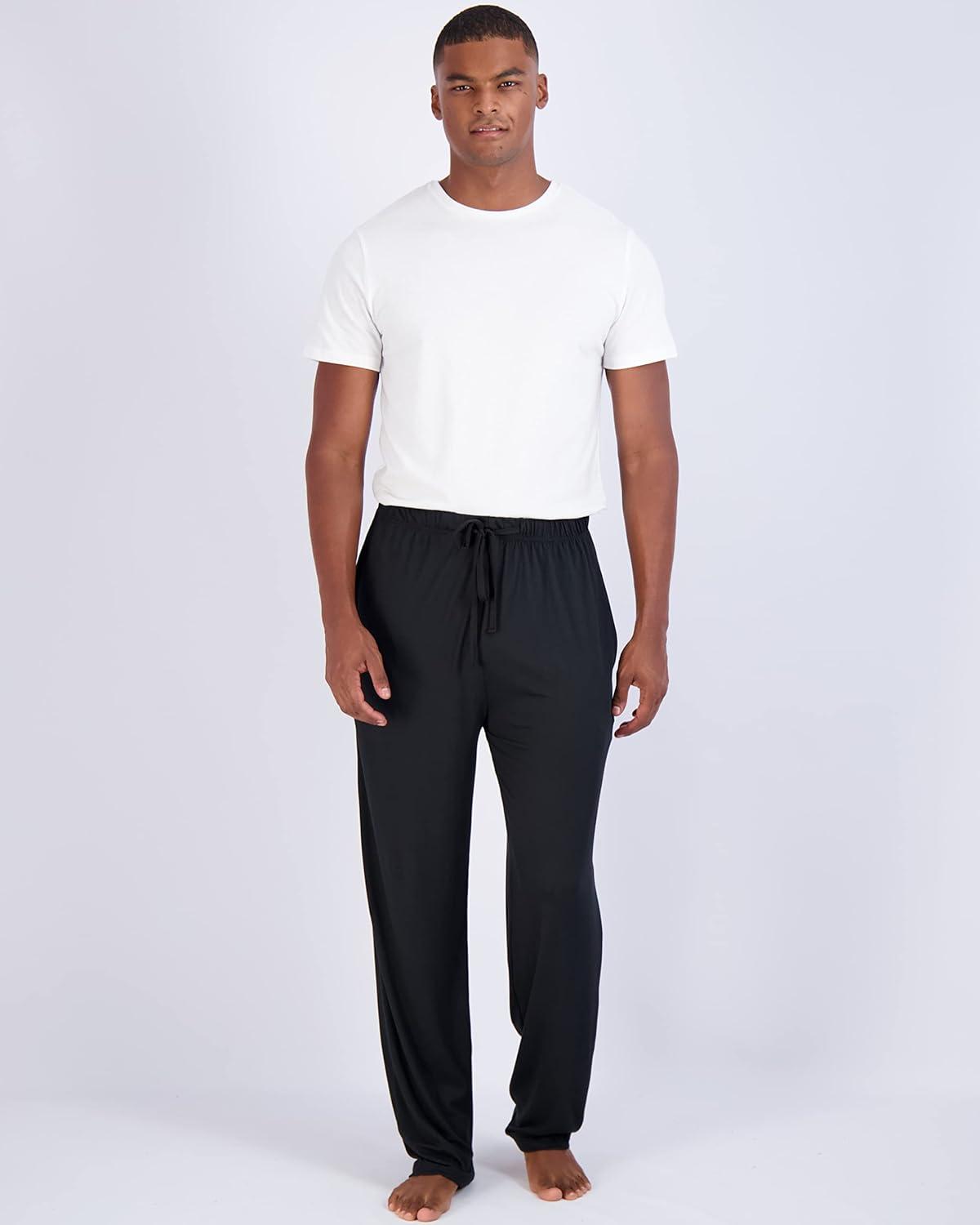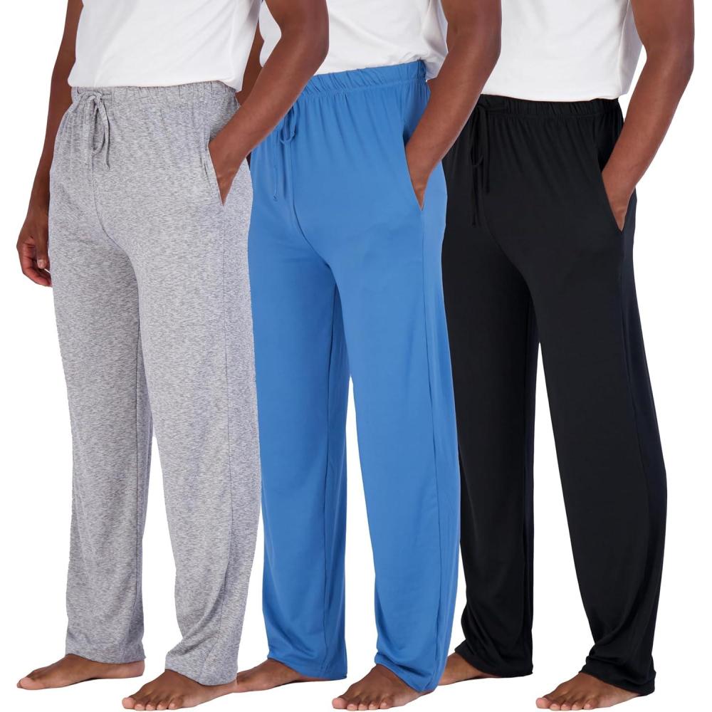 Real Essentials 3 Pack: Men’s Pajama Pants Soft PJ Lounge Bottoms Loungewear Pijamas Elastic Waist Pockets (Big and Tall)(Set 4)