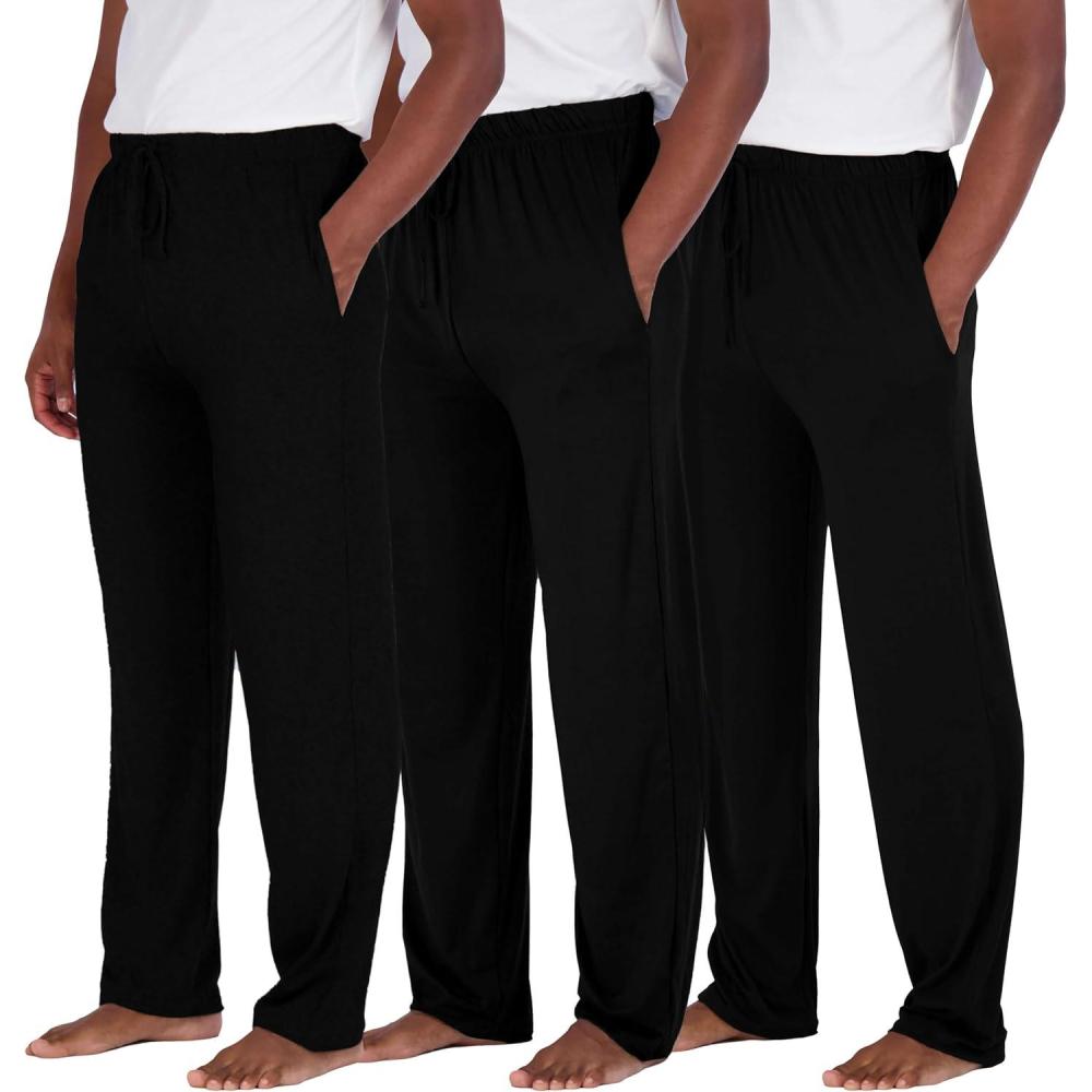 Real Essentials 3 Pack: Men’s Pajama Pants Soft PJ Lounge Bottoms Loungewear Pijamas Elastic Waist Pockets (Big and Tall)(Set 9)