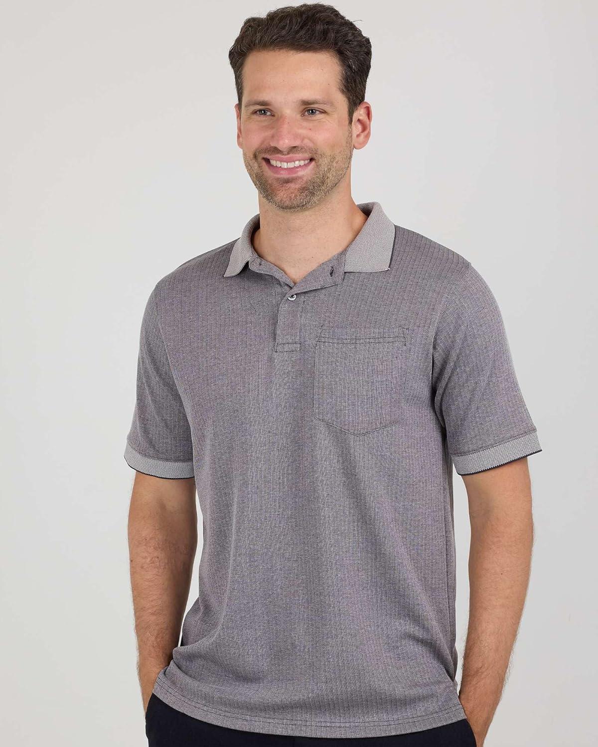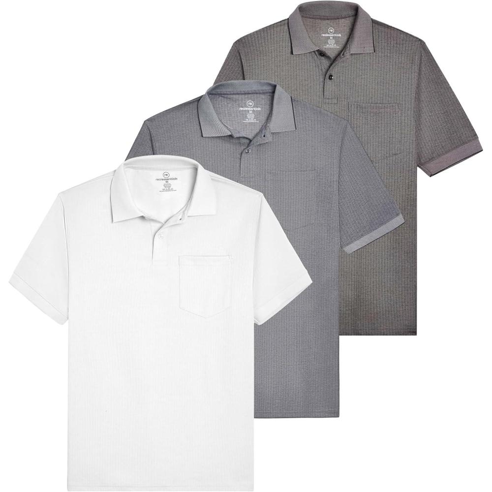 Real Essentials 3 Pack: Men’s Regular-Fit Ribbed Polo Shirt with Pocket (Available in Big & Tall)(Set 6)