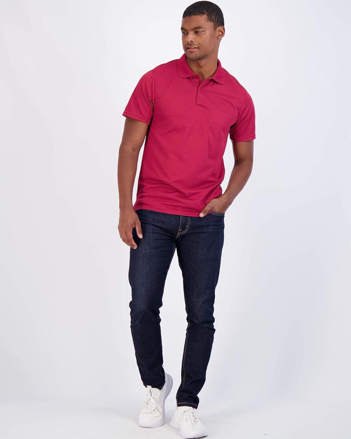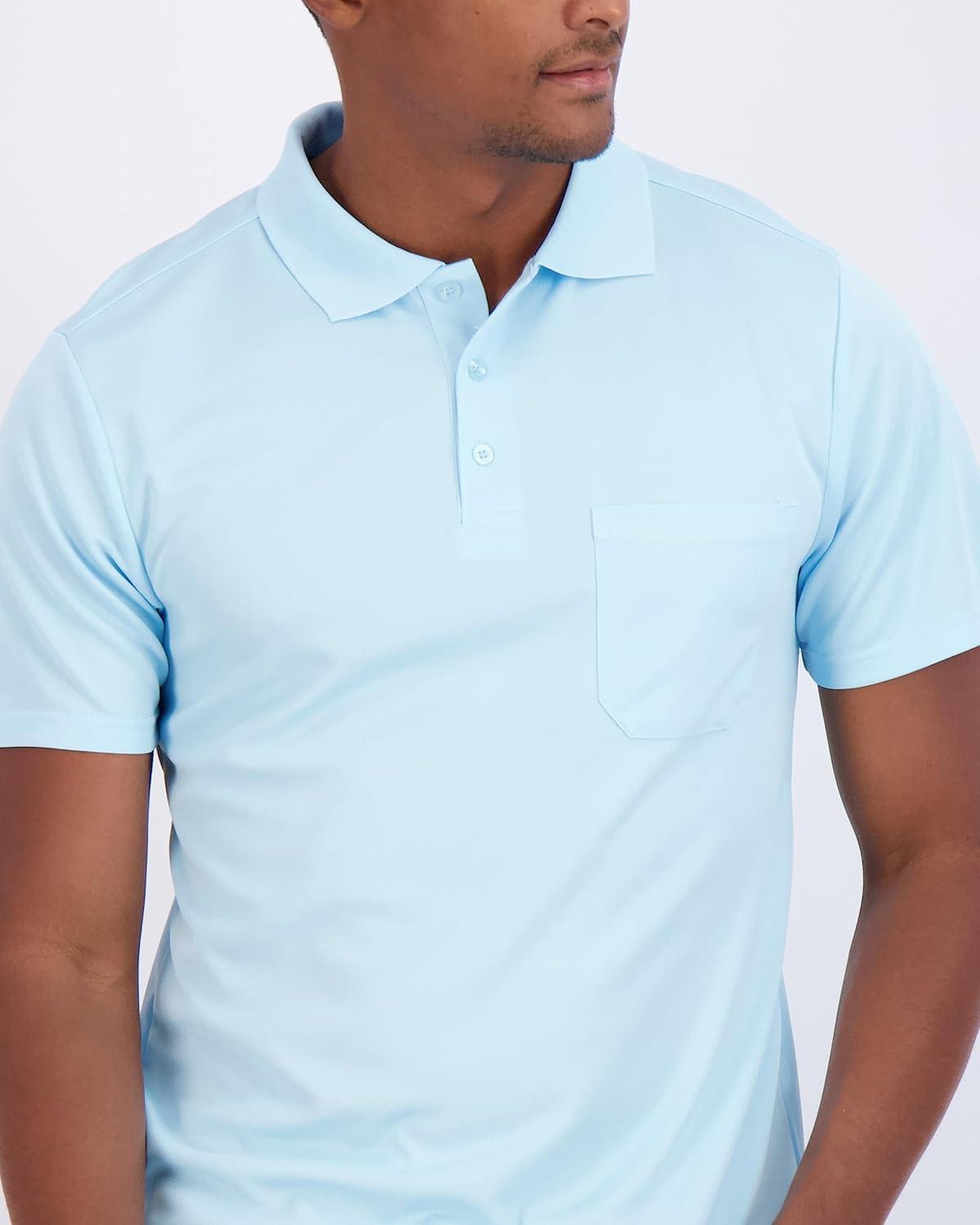 Real Essentials 3 Pack: Mens Short Sleeve Dry-Fit Collared Polo Shirt with Pocket – Active Casual (Available Big & Tall)(Set 9)