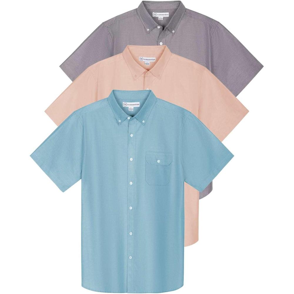 Real Essentials 3 Pack Men’s Short-Sleeve Oxford Solid Button Down Collar Casual Shirts with Pocket (Available in Big & Tall)(Set 2)
