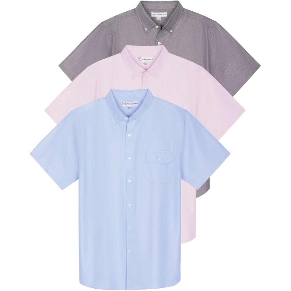 Real Essentials 3 Pack Men’s Short-Sleeve Oxford Solid Button Down Collar Casual Shirts with Pocket (Available in Big & Tall)(Set 3)