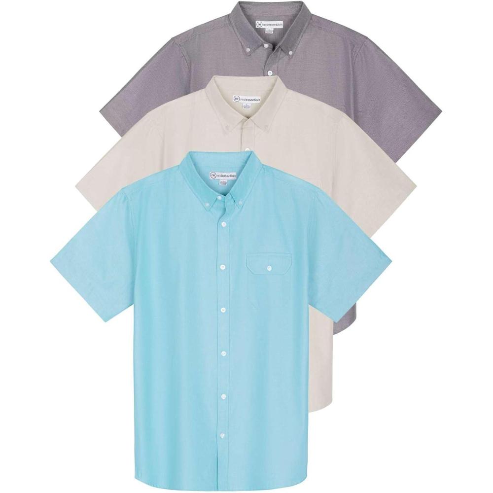 Real Essentials 3 Pack Men’s Short-Sleeve Oxford Solid Button Down Collar Casual Shirts with Pocket (Available in Big & Tall)(Set 7)
