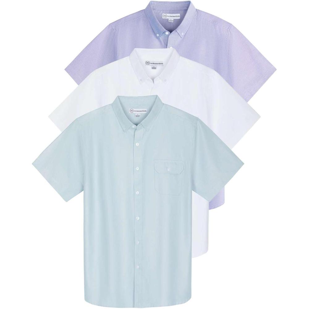 Real Essentials 3 Pack Men's Short-Sleeve Oxford Solid Button Down Collar Casual Shirts with Pocket (Available in Big & Tall)(Set 8)