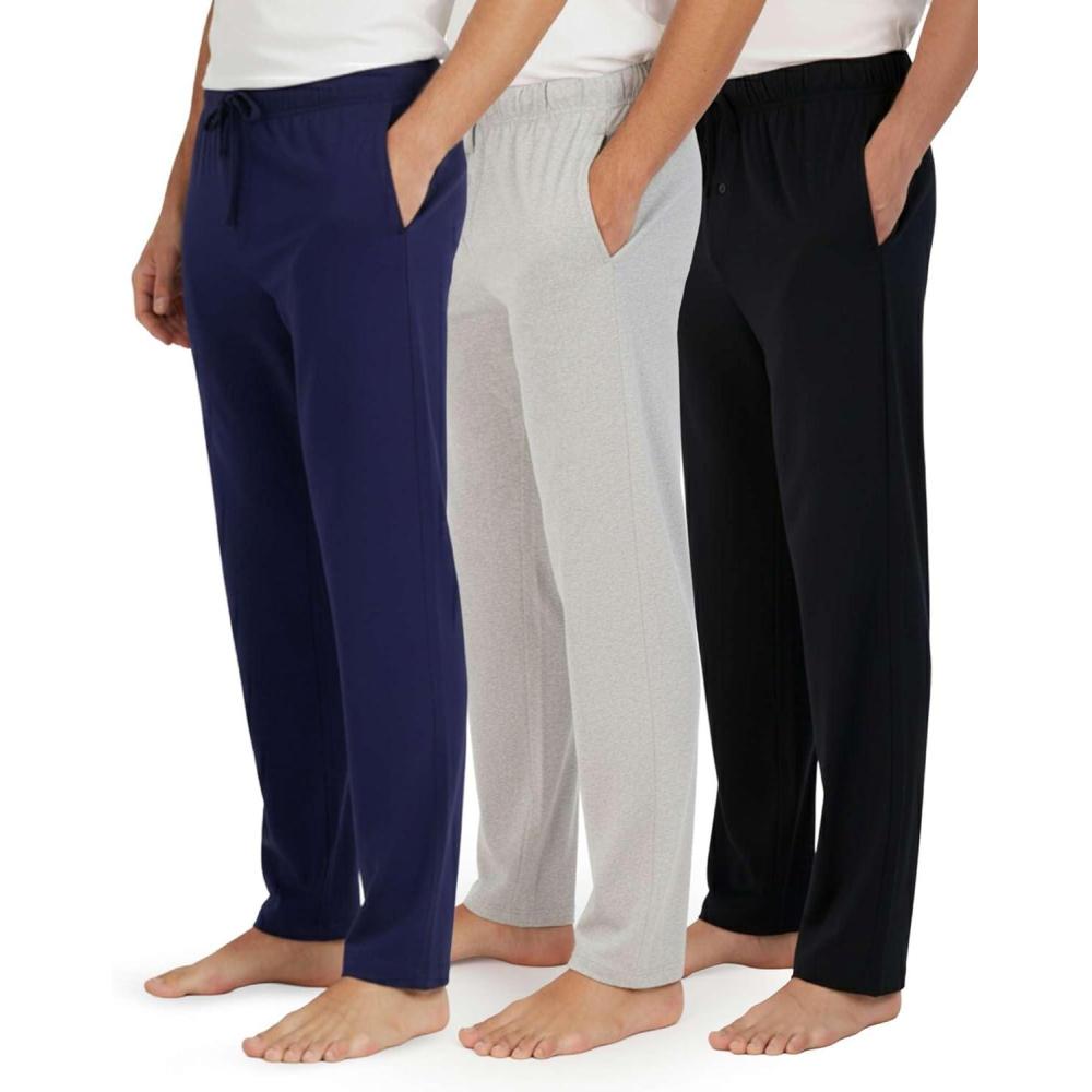 Real Essentials 3 Pack: Men’s Soft Cotton Flannel Pajama Pants PJ Lounge Bottoms Elastic Waist Pockets (Big and Tall)(Cotton Set 6)