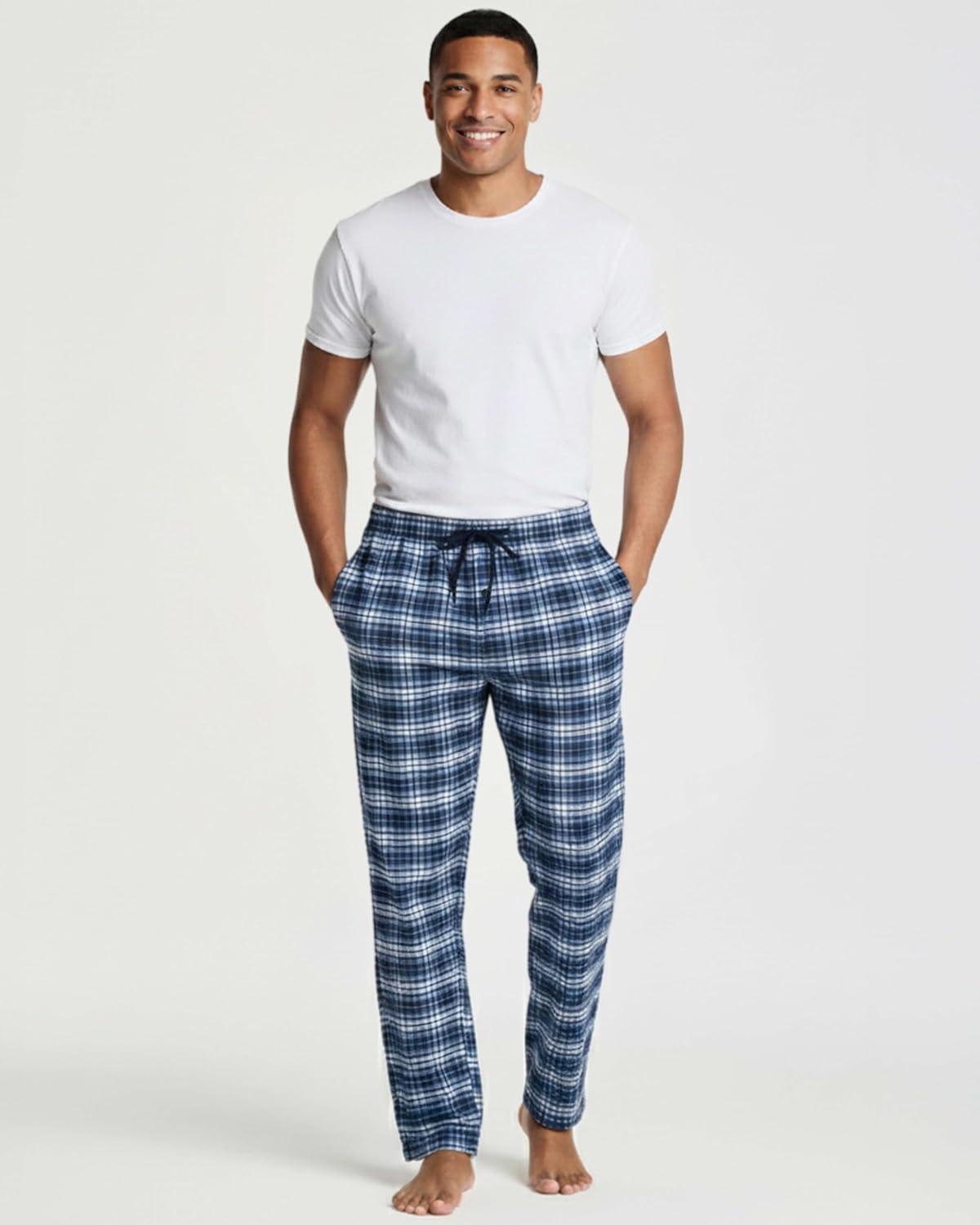 imageReal Essentials 3 Pack Mens Soft Cotton Flannel Pajama Pants PJ Lounge Bottoms Elastic Waist Pockets Big and TallCotton Set 6