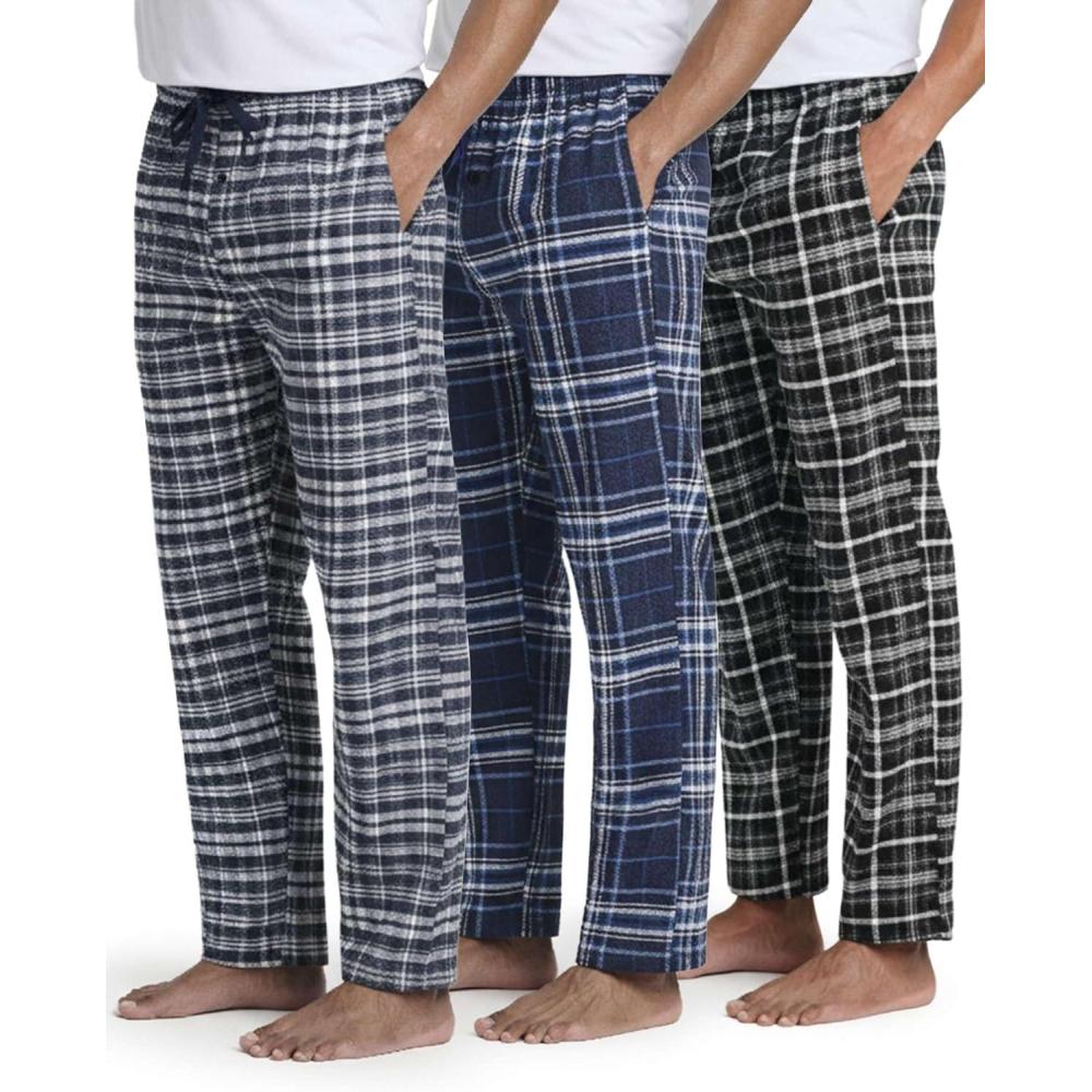 Real Essentials 3 Pack: Men’s Soft Cotton Flannel Pajama Pants PJ Lounge Bottoms Elastic Waist Pockets (Big and Tall)(Cotton Set 4)