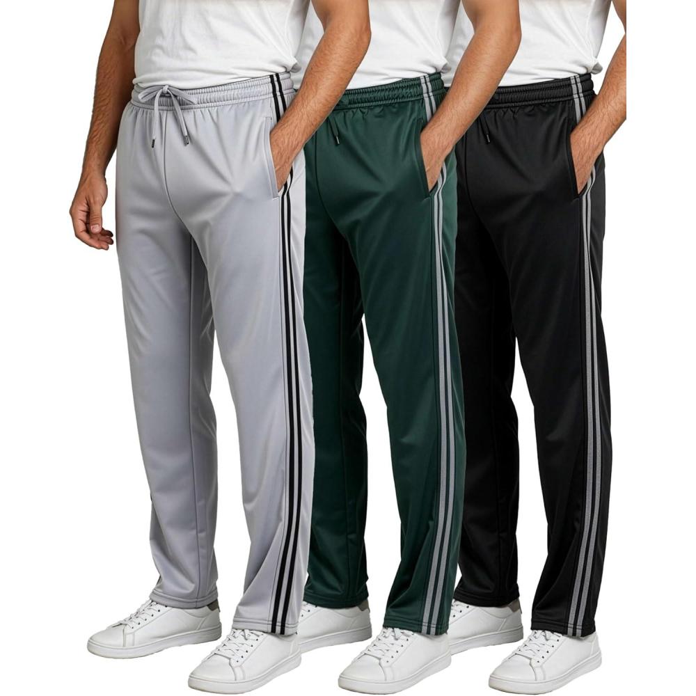 Real Essentials 3 Pack: Men’s Sweatpants – Athletic Track Pants with Pockets | Workout, Running & Lounge (Big and Tall)(Set 8)