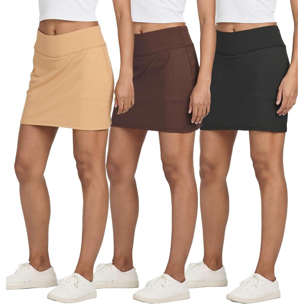 Real Essentials 3 Pack: Women’s 16″ Athletic Skort with Pocket – Skirt for Golf Tennis Gym Running (Available in Plus)(Set 6)
