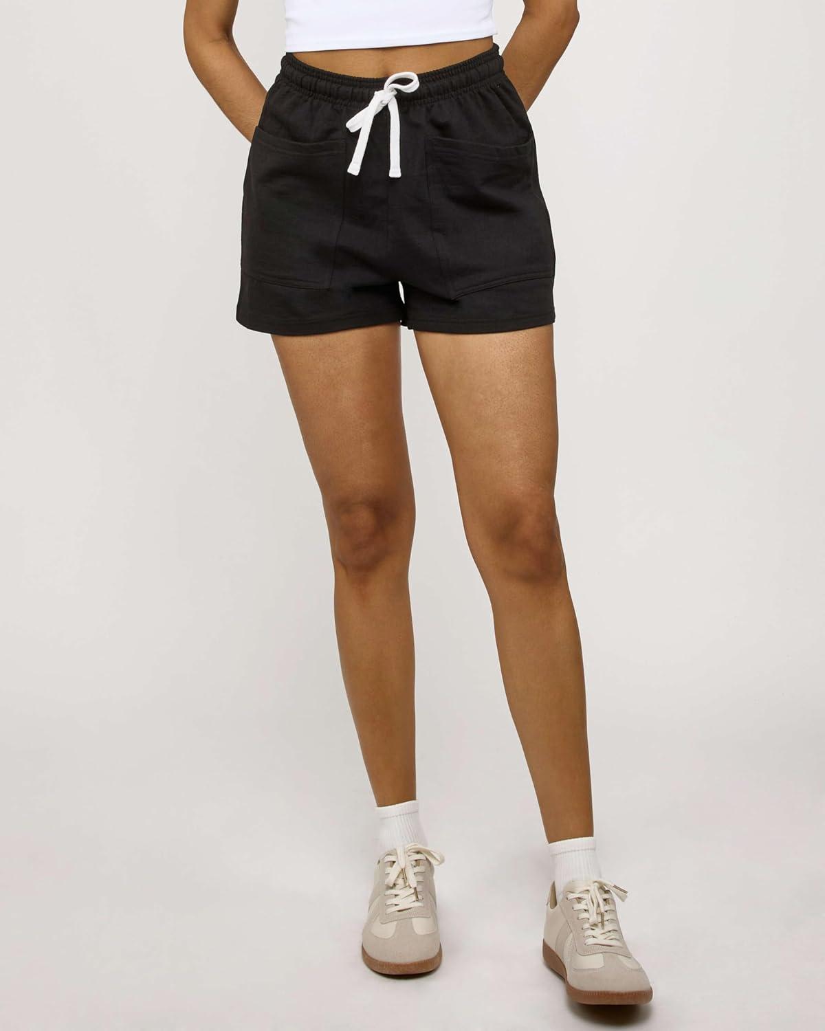Real Essentials 3 Pack: Women's French Terry Square Pocket Shorts Lounge, Casual Shorts with Pockets (Available in Plus)(Set 5)
