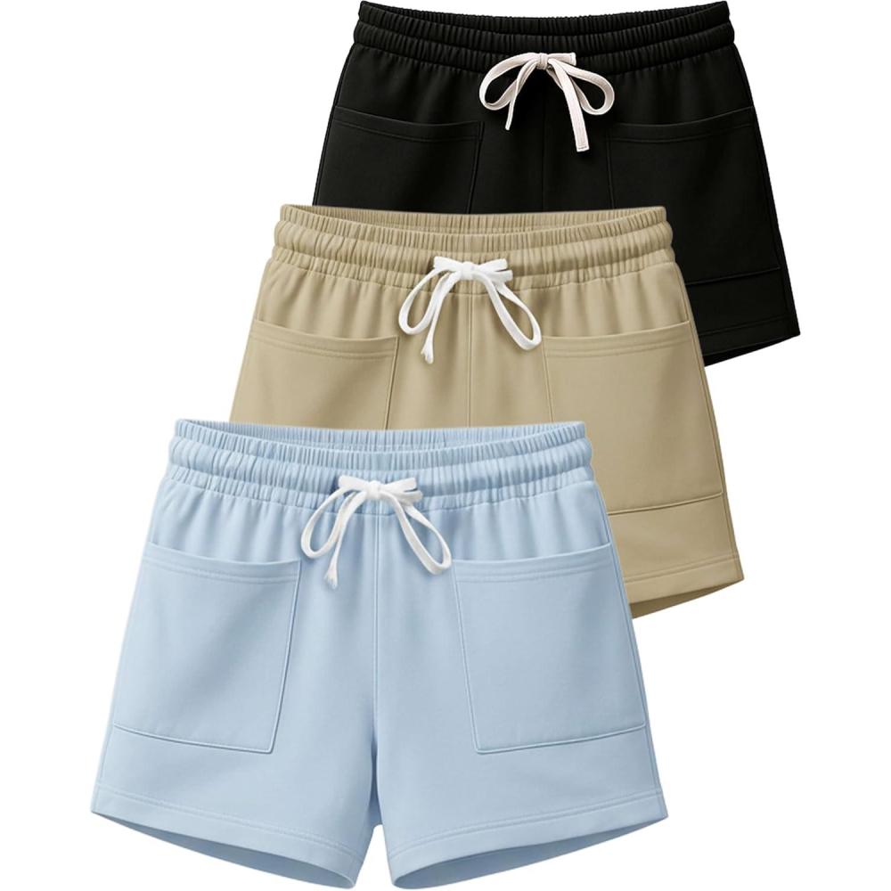 Upgrade your wardrobe with the 3 Pack: Womens Real Essentials Casual French Terry Square Pocket Shorts (Available in Plus) – the perfect balance of comfort and style. Made with soft cotton-blend terry cloth, these casual fleece-inspired shorts are ideal for sleep, pajama, or lounge wear, while also great for gym, running, yoga, jogging, basketball, hiking, or summer sports. Designed with square pockets and a pull-on elastic waistband with drawstring, they deliver a stretchy, comfortable fit for all-day wear. The mid-thigh length and relaxed cut make them perfect as athletic sweatshorts, pj shorts, or everyday casual bottoms. With 3 pack value, you’ll always have a pair ready in classic and trendy colors like black, grey, navy, white, and blue. These curvy-friendly shorts are available in regular and plus sizes, giving every woman the perfect fit—whether you prefer baggy, loose, or fitted styles. From lounging at home to active days outdoors, these casual womens French Terry shorts deliver the comfort of sleepwear with the function of activewear—a must-have in any everyday basics or sportswear collection.