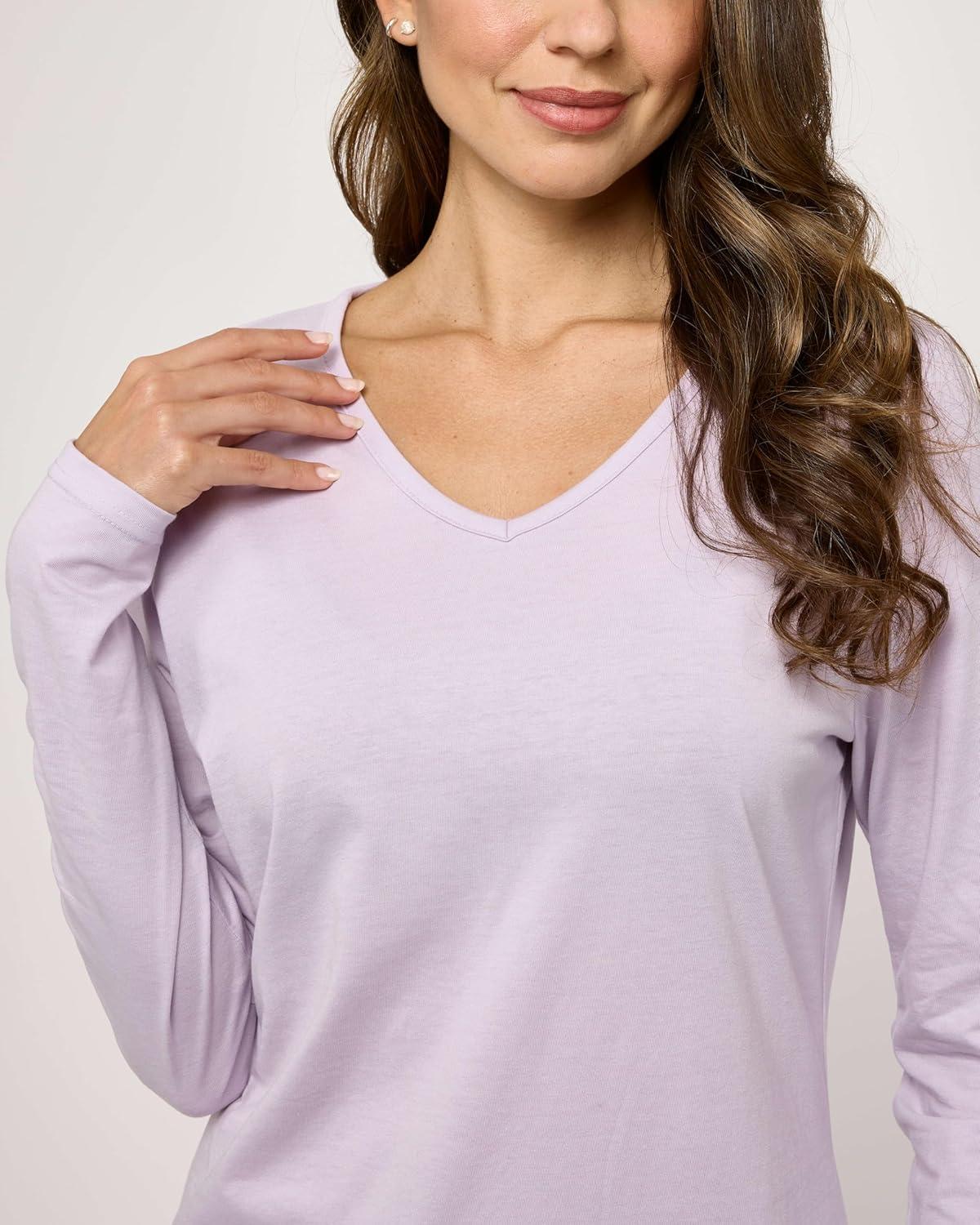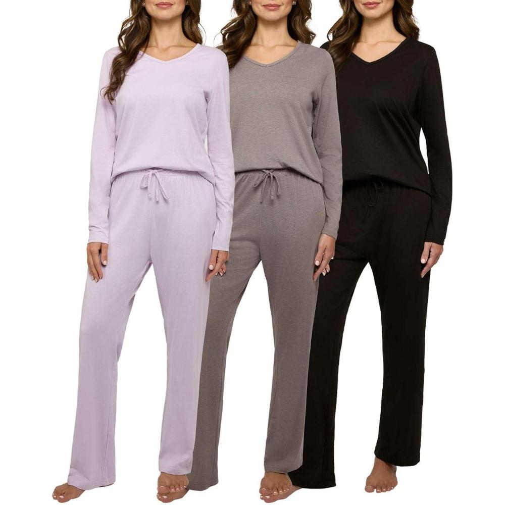 Real Essentials 3 Pack Women’s Soft Cotton Long Sleeve Pajama Set with Pants – Lounge Sets for Women (Available In Plus)(Set 8)