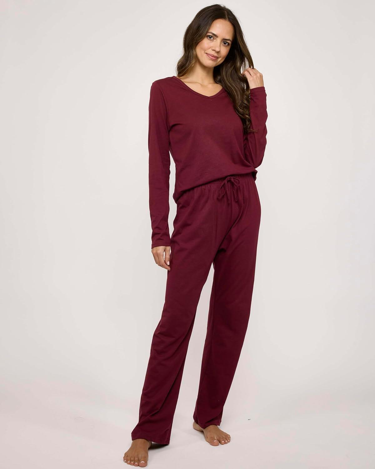 Real Essentials 3 Pack Women’s Soft Cotton Long Sleeve Pajama Set with Pants – Lounge Sets for Women (Available In Plus)(Set 8)