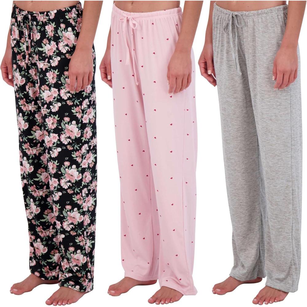 Real Essentials 3 Pack: Women’s Ultra-Soft Comfy Pajama Lounge Pants Sleepwear (Available in Plus Size)(Soft Knit Set E)