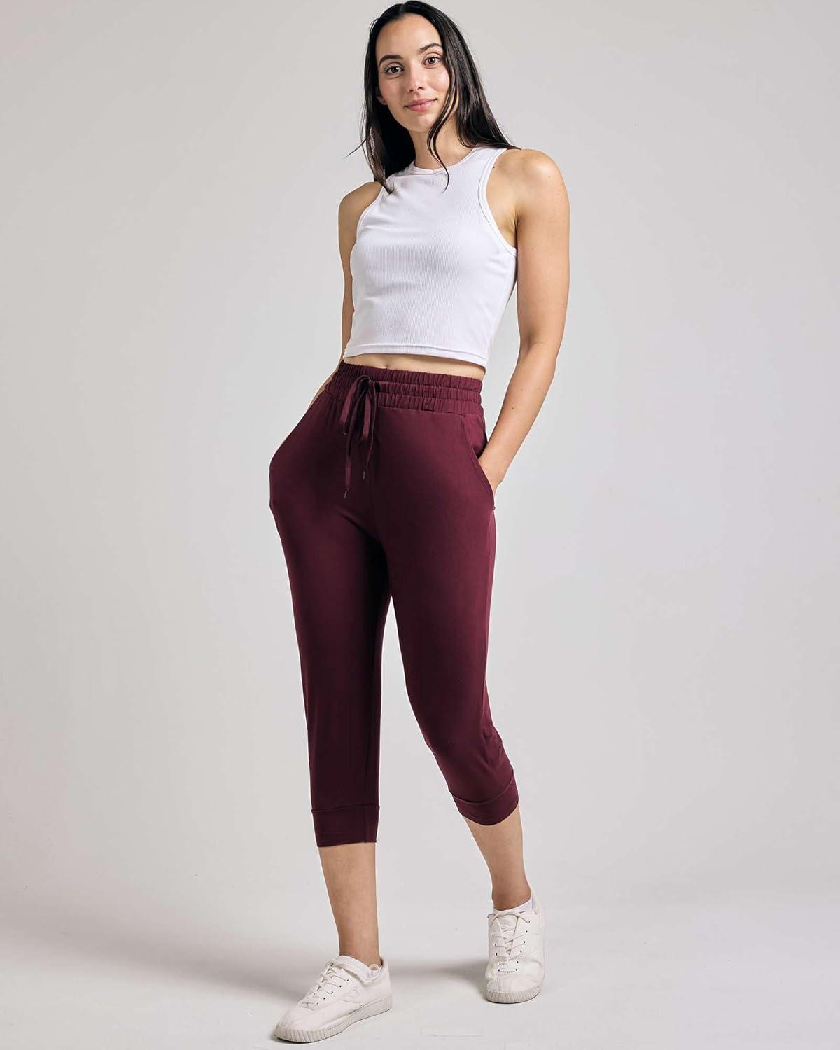 Real Essentials 3-Pack: Women’s Ultra Soft Lounge Capri Joggers Sweatpants Athletic Yoga with Pockets(Available in Plus Size)(Set 8)