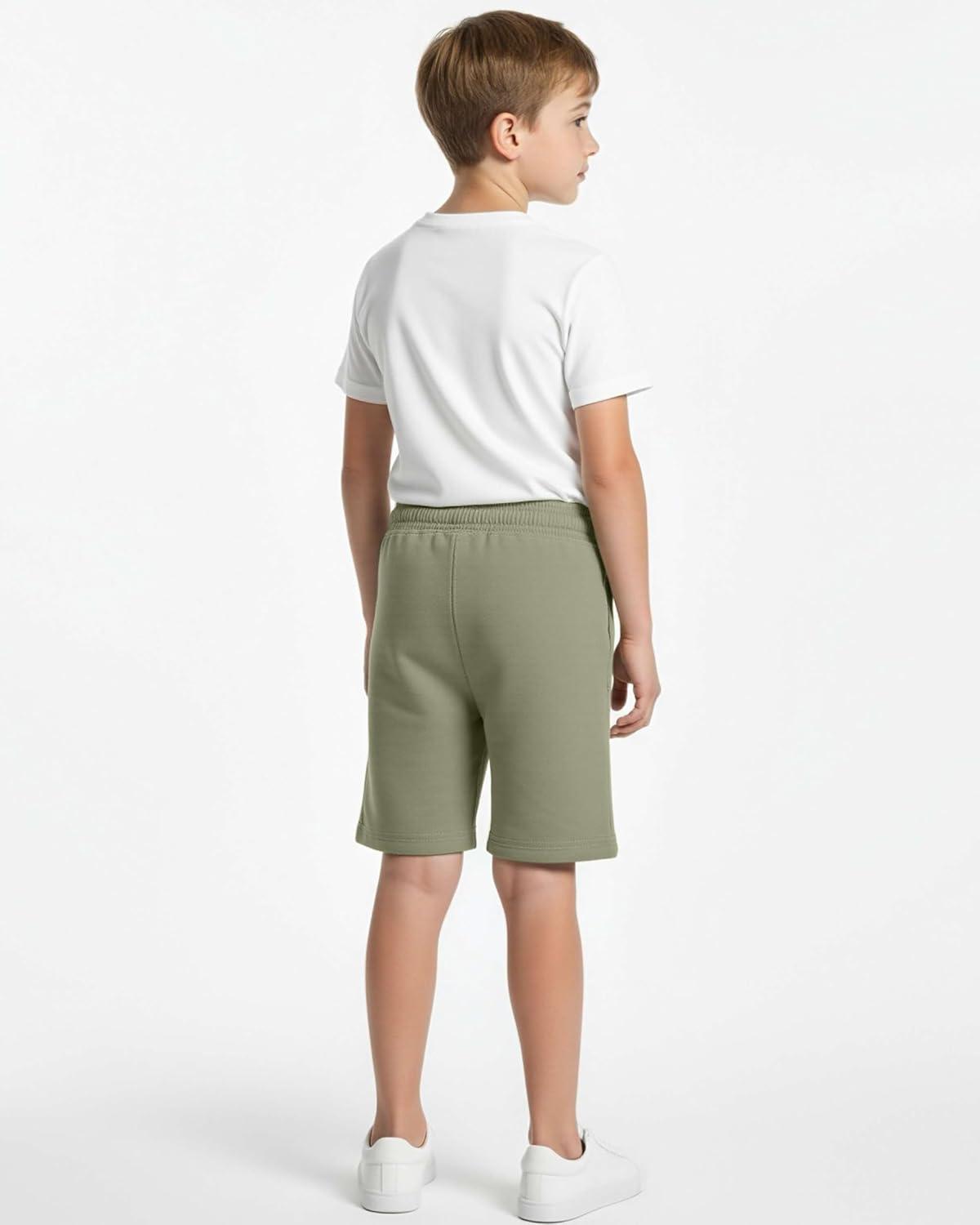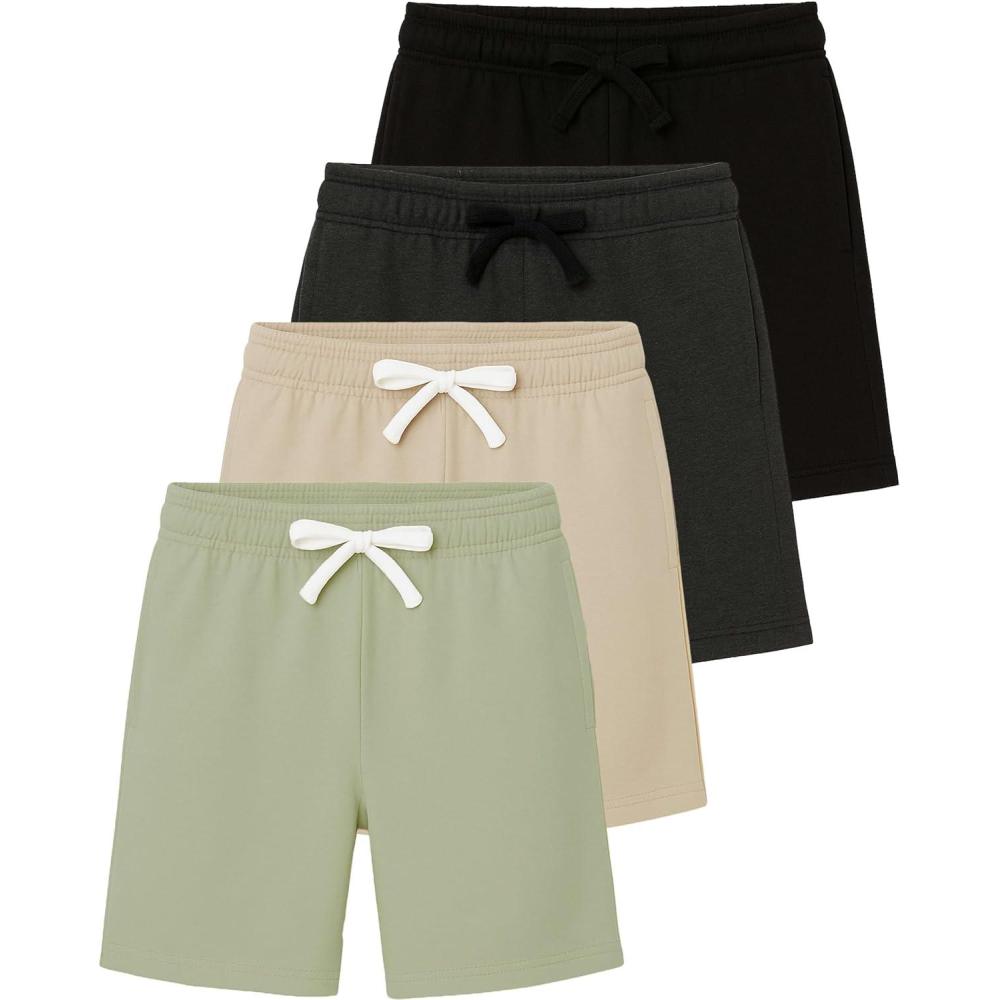 Real Essentials 4 Pack: Boys Fleece Lounge Shorts – Soft Pull-On Gym, School, Sleep & Active Sports Shorts for Kids(Set 5)
