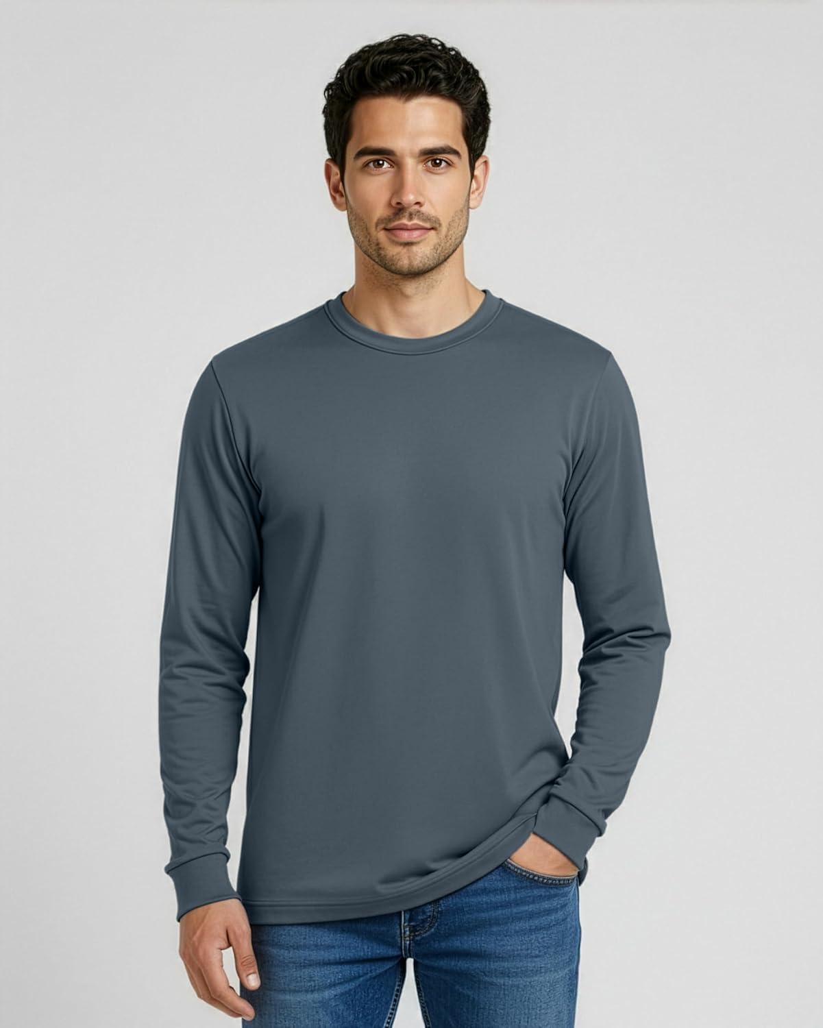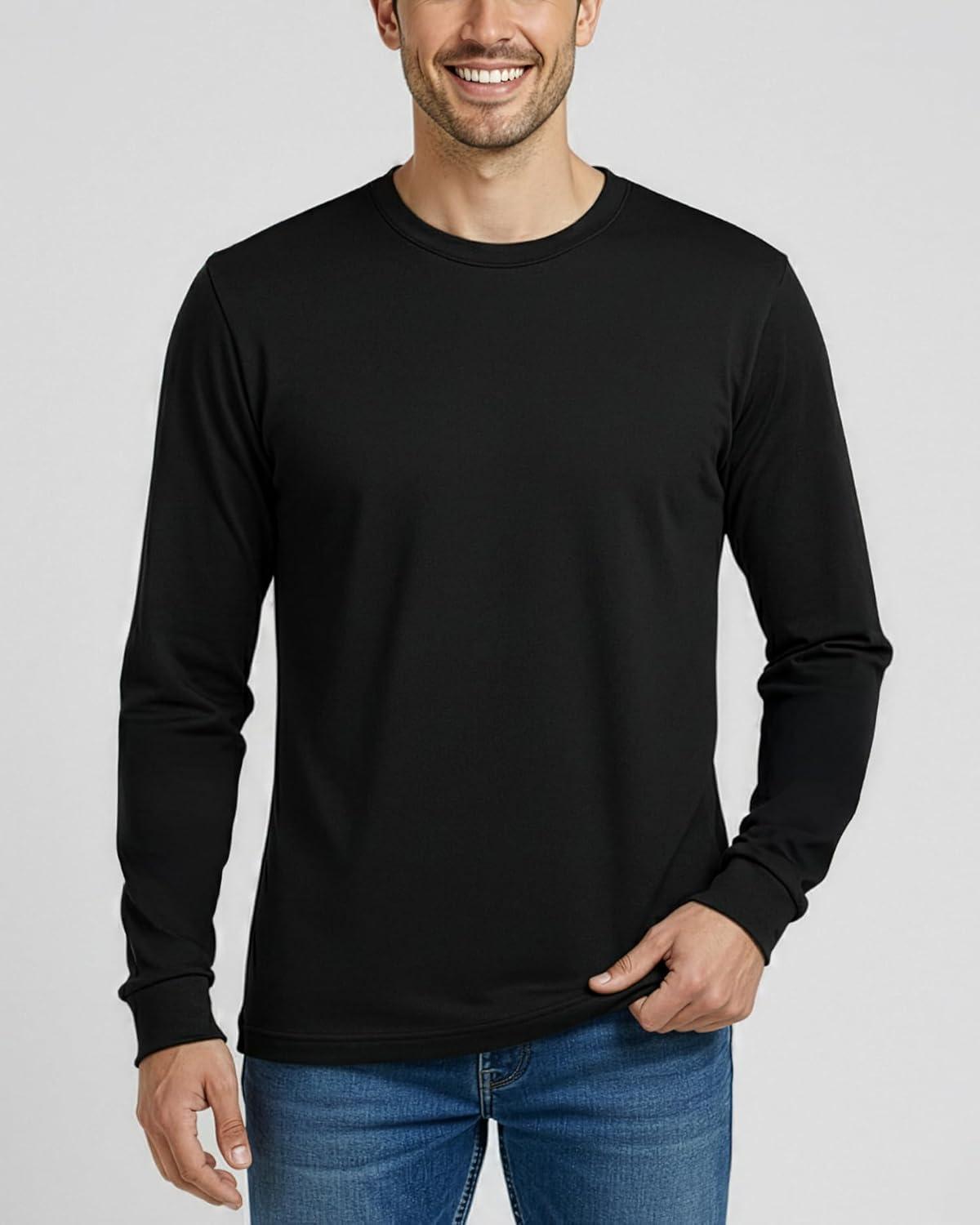 This 4 pack of men's long sleeve crew neck shirts is made from 100% cotton for a soft and breathable feel that adapts well to fall and winter conditions. The relaxed fit allows natural movement during warmups, stretching, walking, and everyday activity, while remaining comfortable during work hours and off-duty time. The fabric provides steady comfort across varying temperatures, making these shirts useful for both indoor and outdoor routines. The long sleeves offer balanced coverage for cooler days, and the classic crew neck keeps the style clean and familiar. These shirts can be worn as a standalone layer or used as a comfortable undershirt beneath work jackets, hoodies, or cold-weather gear. The bulk multipack includes essential colors such as black, white, and grey, making weekly rotation simple and consistent for work, casual wear, gym use, or travel. Reliable for light workouts, jogging, cool-weather warmups, daily tasks, yard work, or relaxed weekends, this set supports an active lifestyle throughout fall and winter. Designed for ease of movement and steady comfort across changing conditions, these shirts function as dependable everyday basics. playera manga larga para hombre, camisetas para hombre, camisas de trabajo, ropa de invierno, playeras manga larga hombres