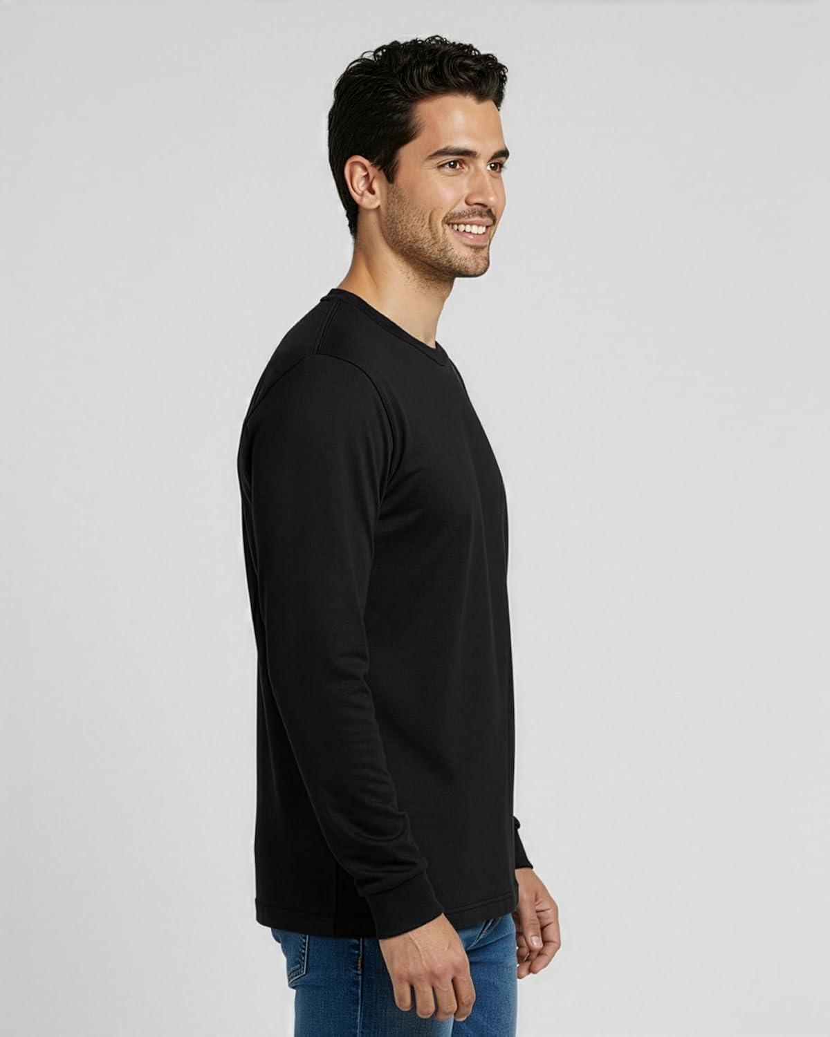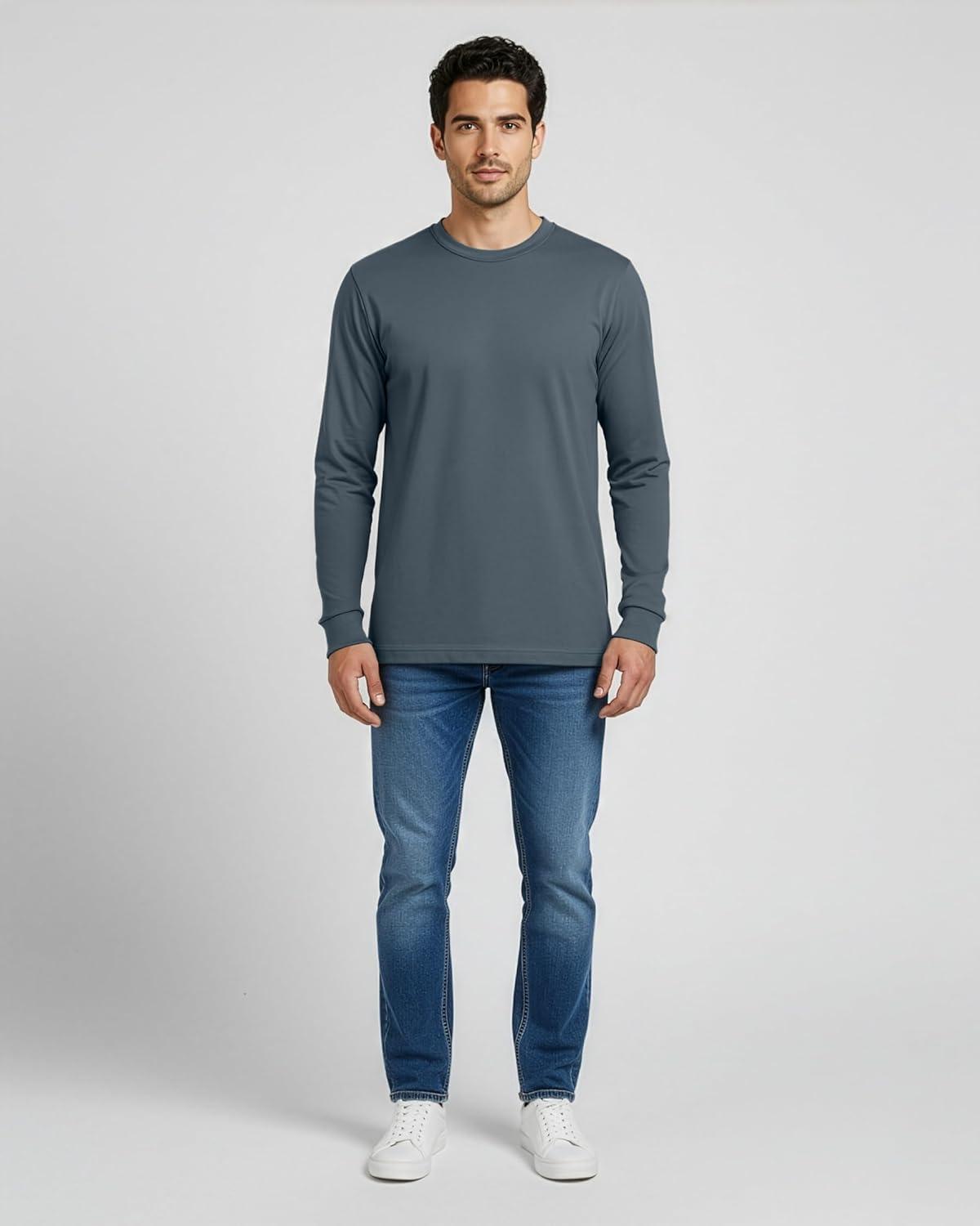 Real Essentials 4 Pack: Men’s 100% Cotton Long Sleeve Crew Neck T-Shirt – Soft Work Casual Jersey Tees(Set 4)