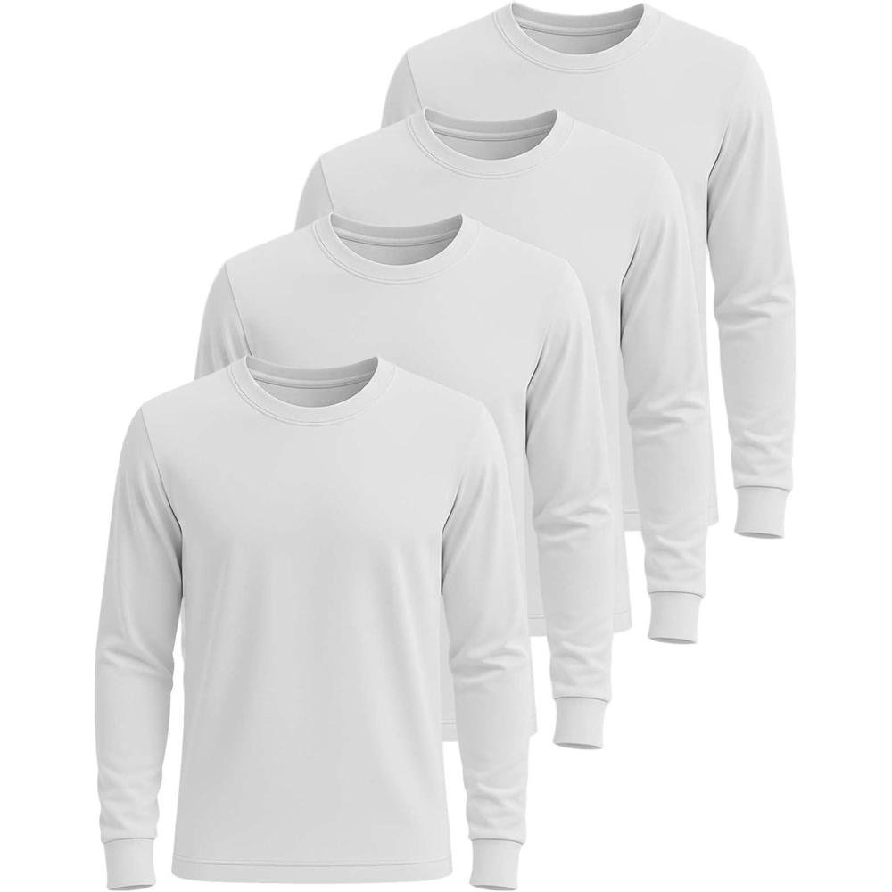 This 4 pack of men's long sleeve crew neck shirts is made from cotton for a soft and breathable feel that adapts well to fall and winter conditions. The relaxed fit allows natural movement during warmups, stretching, walking, and everyday activity, while remaining comfortable during work hours and off-duty time. The fabric provides steady comfort across varying temperatures, making these shirts useful for both indoor and outdoor routines. The long sleeves offer balanced coverage for cooler days, and the classic crew neck keeps the style clean and familiar. These shirts can be worn as a standalone layer or used as a comfortable undershirt beneath work jackets, hoodies, or cold-weather gear. The bulk multipack includes essential colors such as black, white, and grey, making weekly rotation simple and consistent for work, casual wear, gym use, or travel. Reliable for light workouts, jogging, cool-weather warmups, daily tasks, yard work, or relaxed weekends, this set supports an active lifestyle throughout fall and winter. Designed for ease of movement and steady comfort across changing conditions, these shirts function as dependable everyday basics. playera manga larga para hombre, camisetas para hombre, camisas de trabajo, ropa de invierno, playeras manga larga hombres