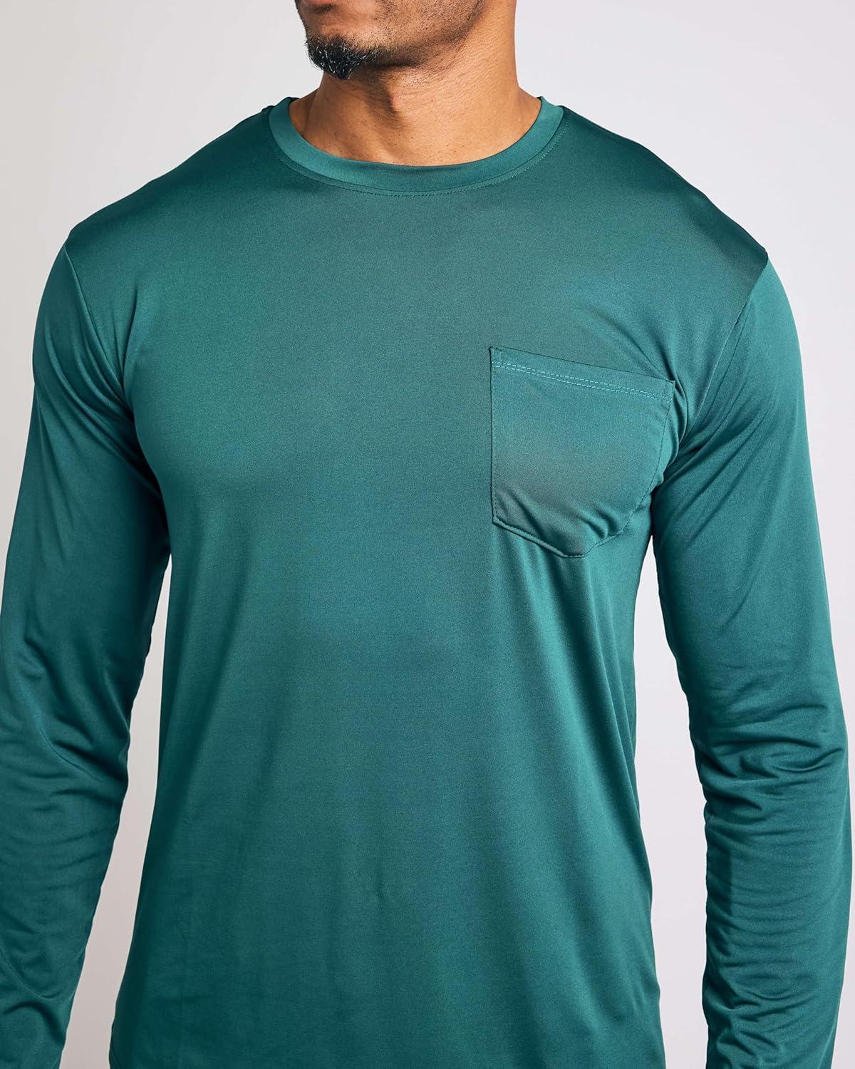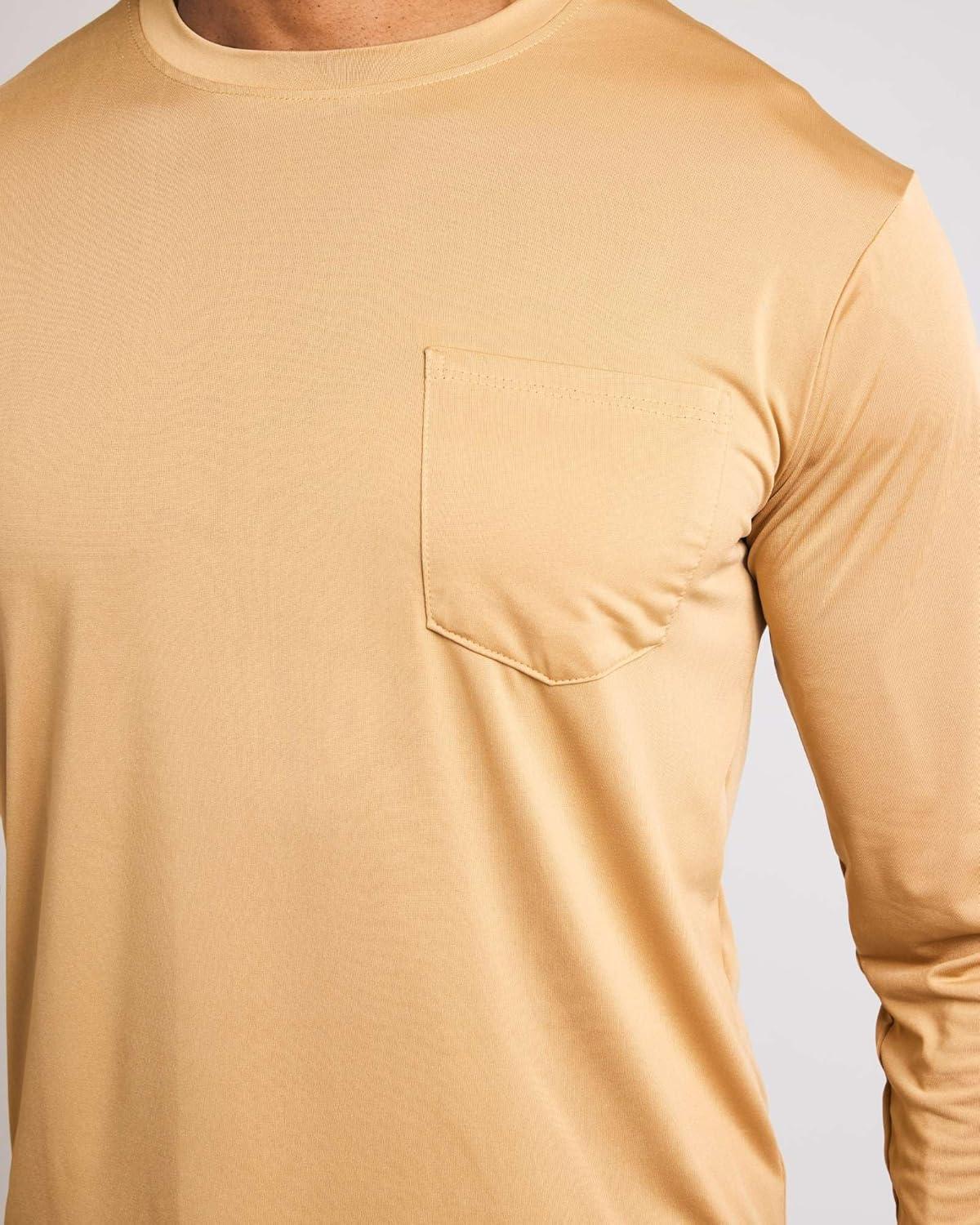 Real Essentials 4 Pack: Men’s Dry-Fit Active Athletic Long Sleeve Pocket Crew T-Shirt Outdoors UPF 50 (S-5XLT)(Set 8)