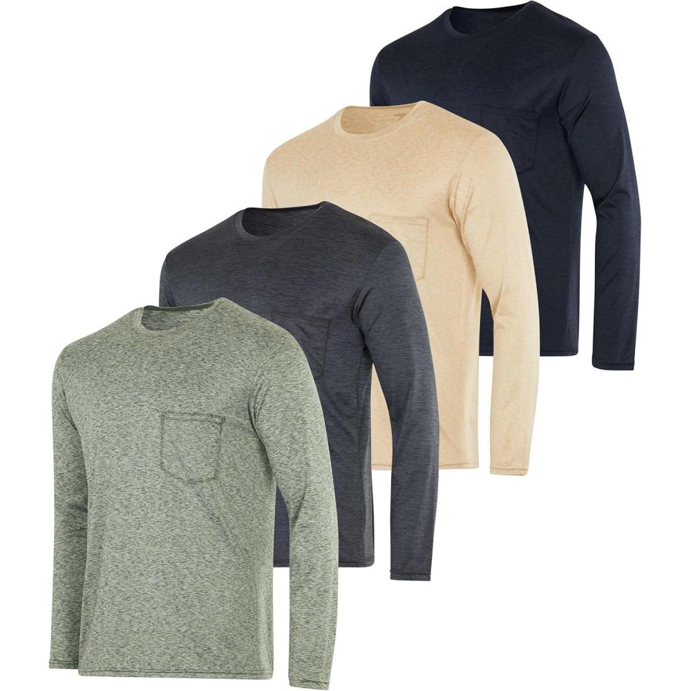 imageReal Essentials 4 Pack Mens DryFit Active Athletic Long Sleeve Pocket Crew TShirt Outdoors UPF 50 S5XLTSet 7