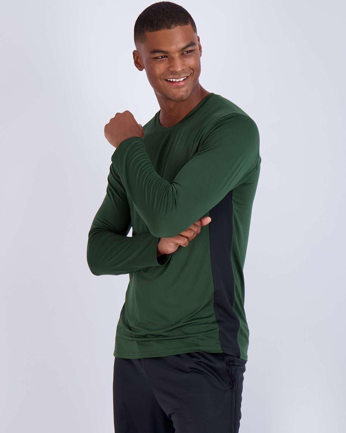imageReal Essentials 4 Pack Mens Long Sleeve Dry Fit T Shirts Hiking Fishing Workout Gym Work Sun UPF 50 Wicking Running TeeSet K